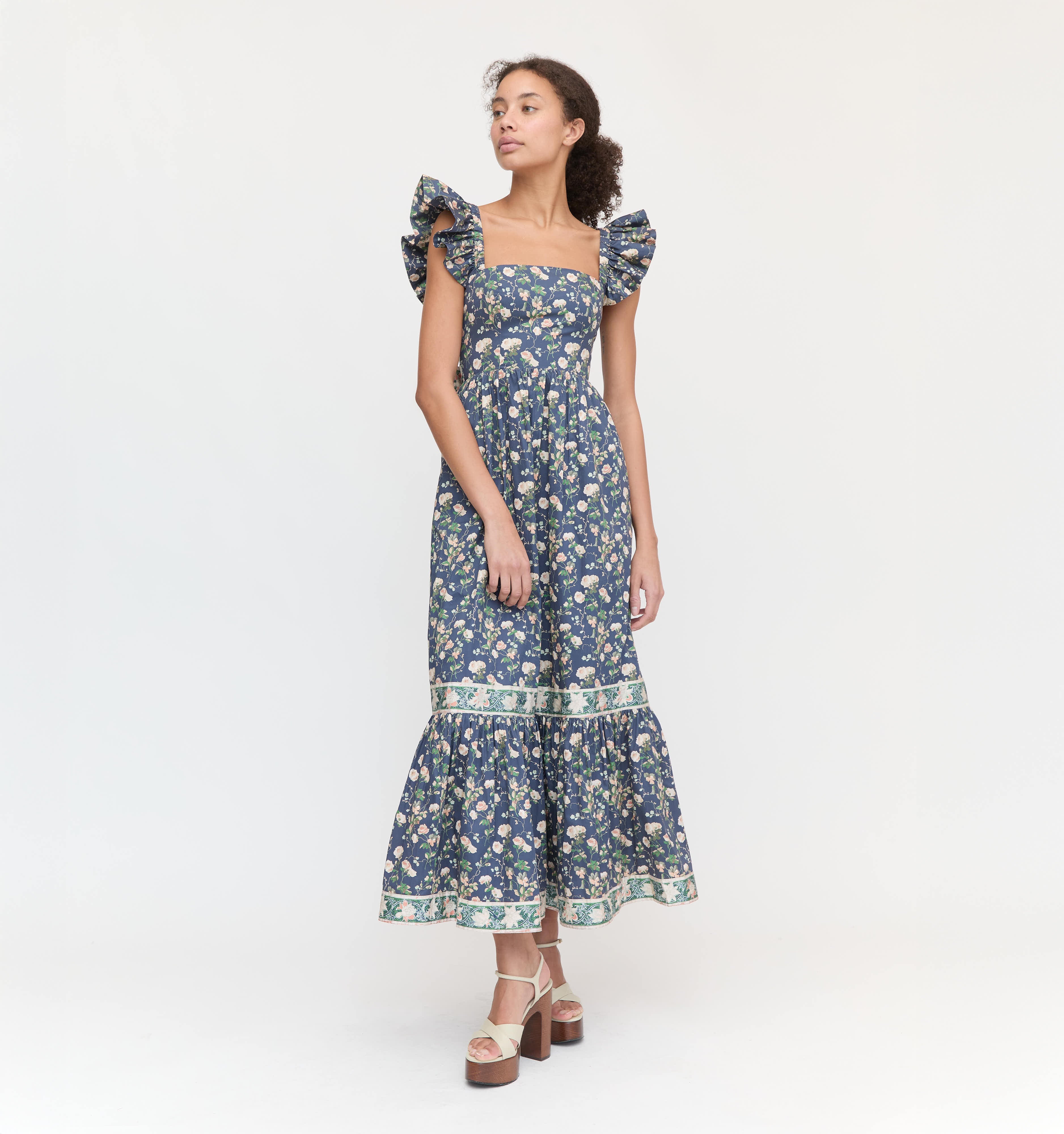 Meet the Pippa Dress. Inspired by classic apron dresses, Pippa features a functional waist sash, square neckline and a decorative flounce at the hem. Dramatic ruffles adorn the sleeves for a feminine and flattering look.