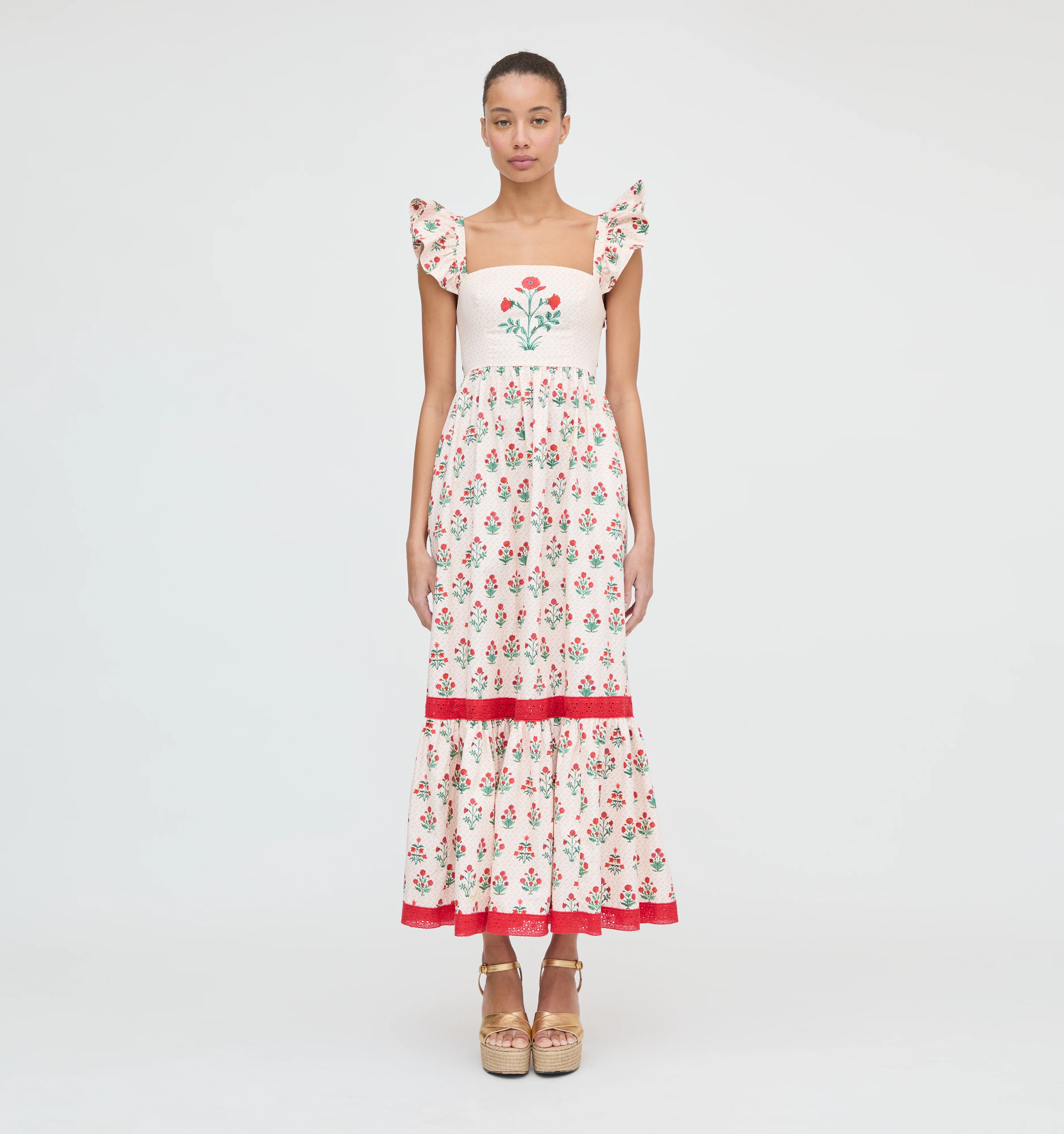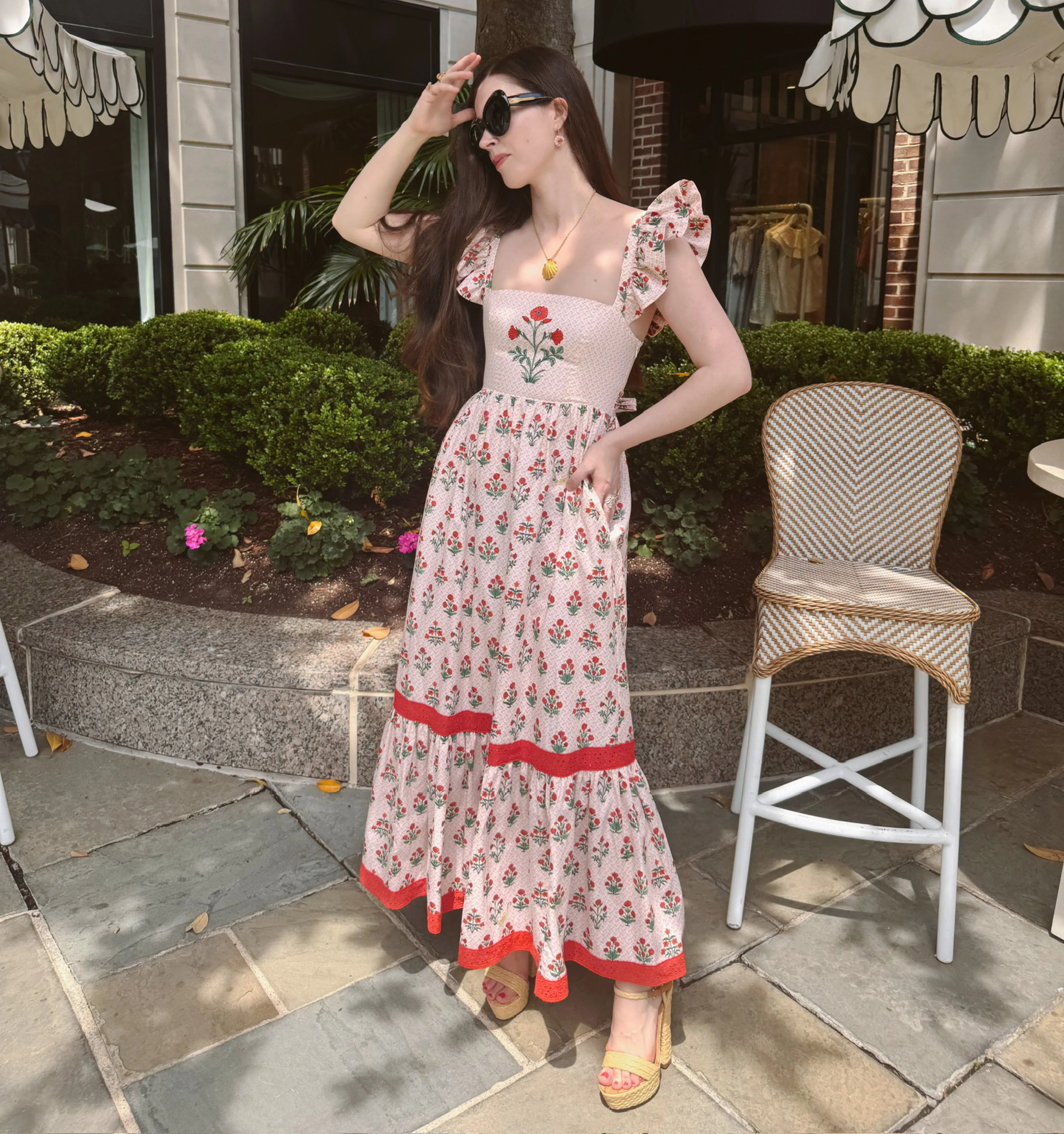Meet the Pippa Dress. Inspired by classic apron dresses, Pippa features a functional waist sash, square neckline and a decorative flounce at the hem. Dramatic ruffles adorn the sleeves for a feminine and flattering look.