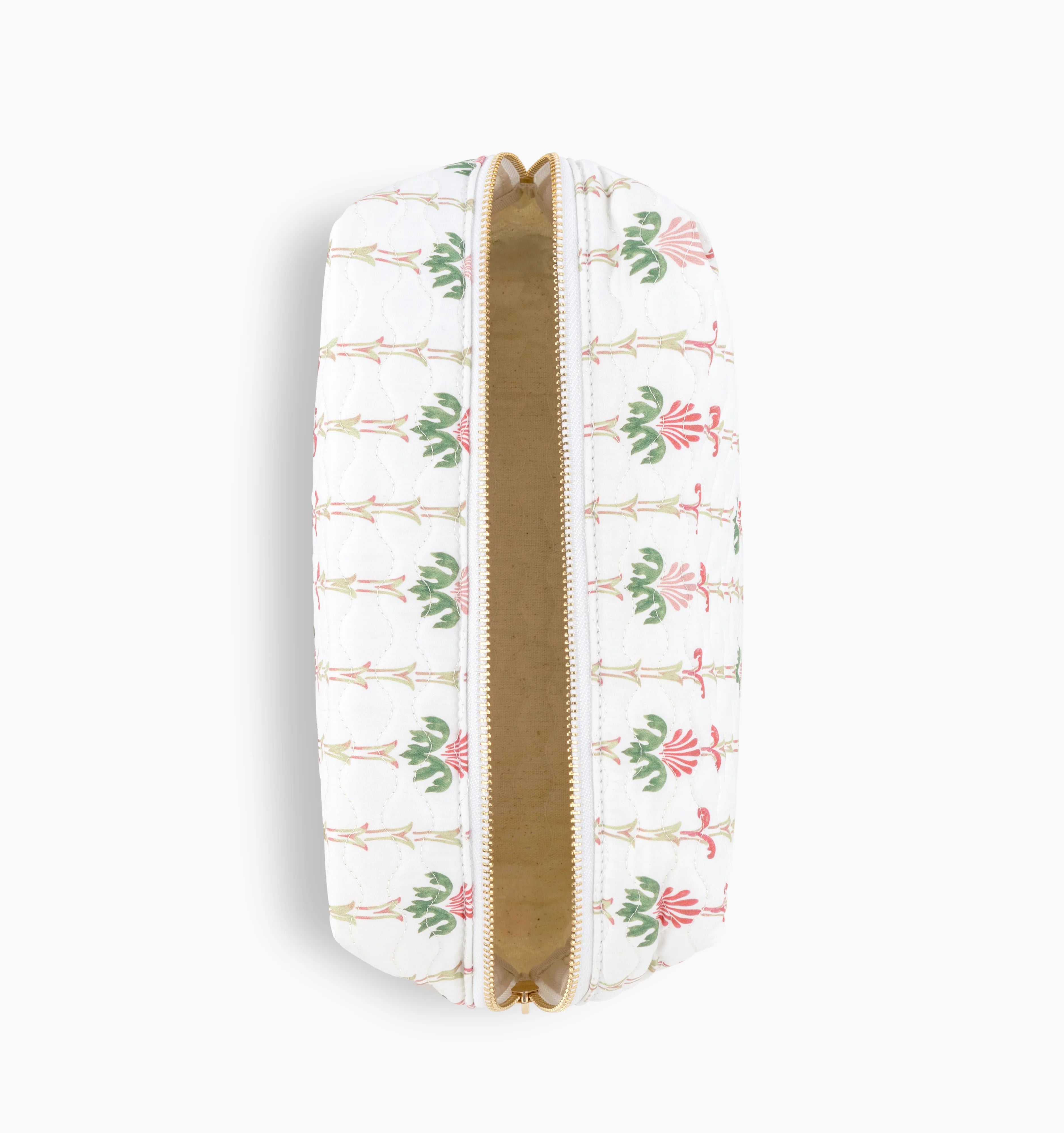 Meet the Quilted Cosmetic Bag. The Quilted Cosmetic Bag features a soft, quilted exterior and a durable, canvas interior. Perfect for one too many lip products, snacks, receipts and other purse oddities.