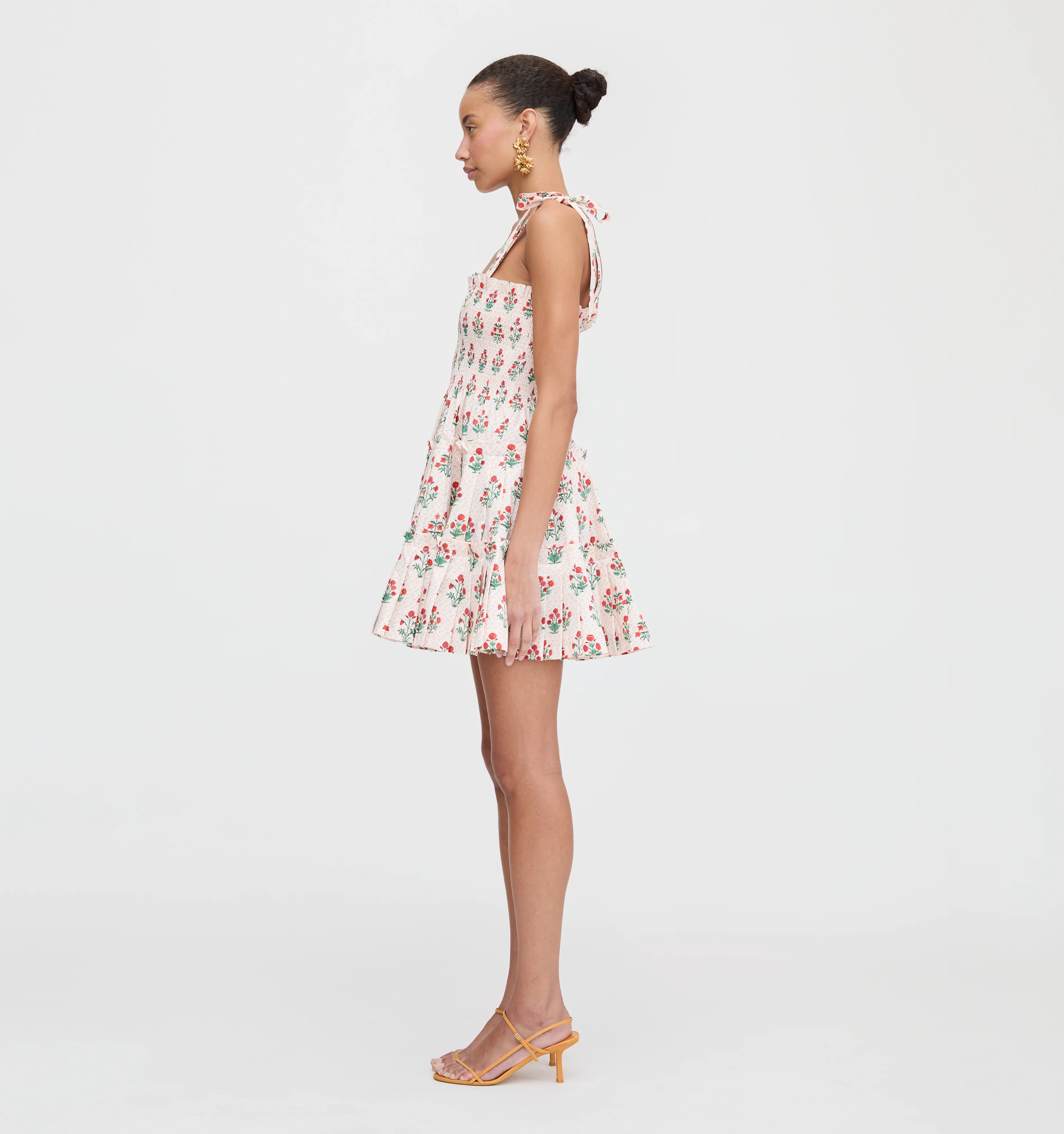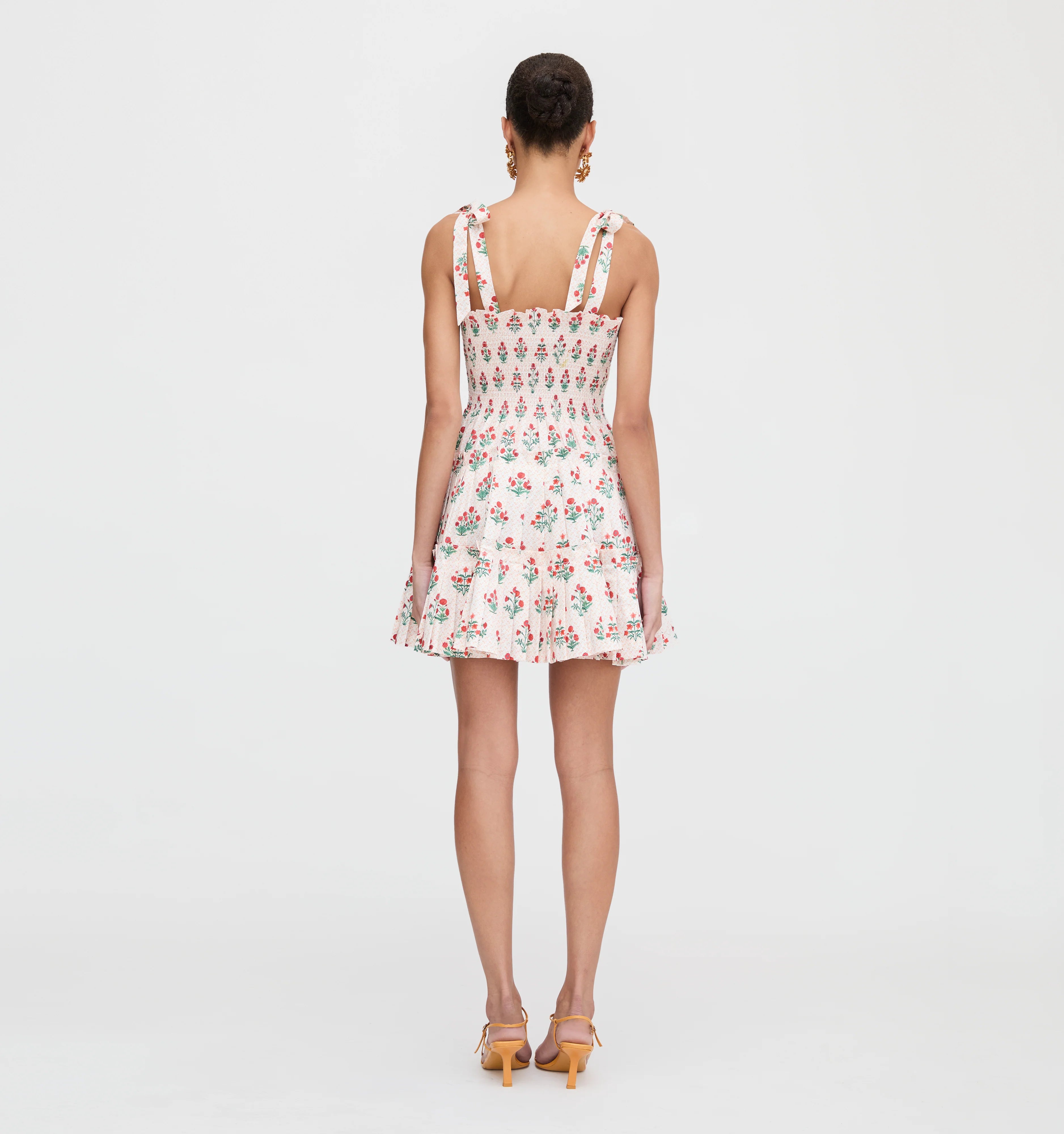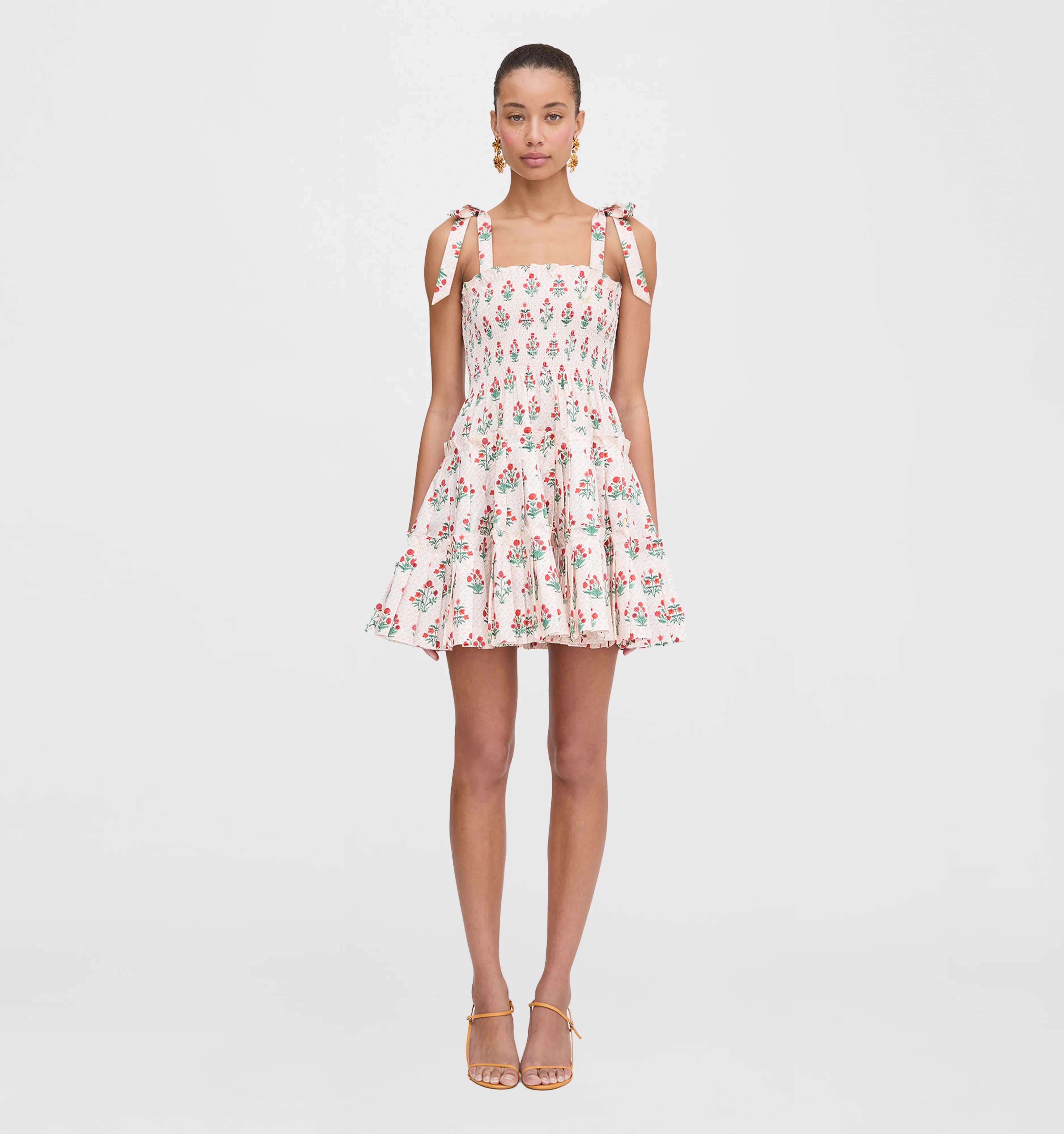 Meet the Charlotte Ribbon Nap Dress. Charlotte’s power lies in the mini, pleated skirt. To the naked eye it may look like a simple tiered skirt, but oh – the pleats! Combined with two ruffled tiers, the pleats give this mini skirt max volume for a flirty flare. A square neckline and fully smocked bodice make it as comfortable as it is chic. The straps are self-tie – creativity is highly encouraged. Big bows, little bows, tie it in the bow for no bows, the choice is yours.