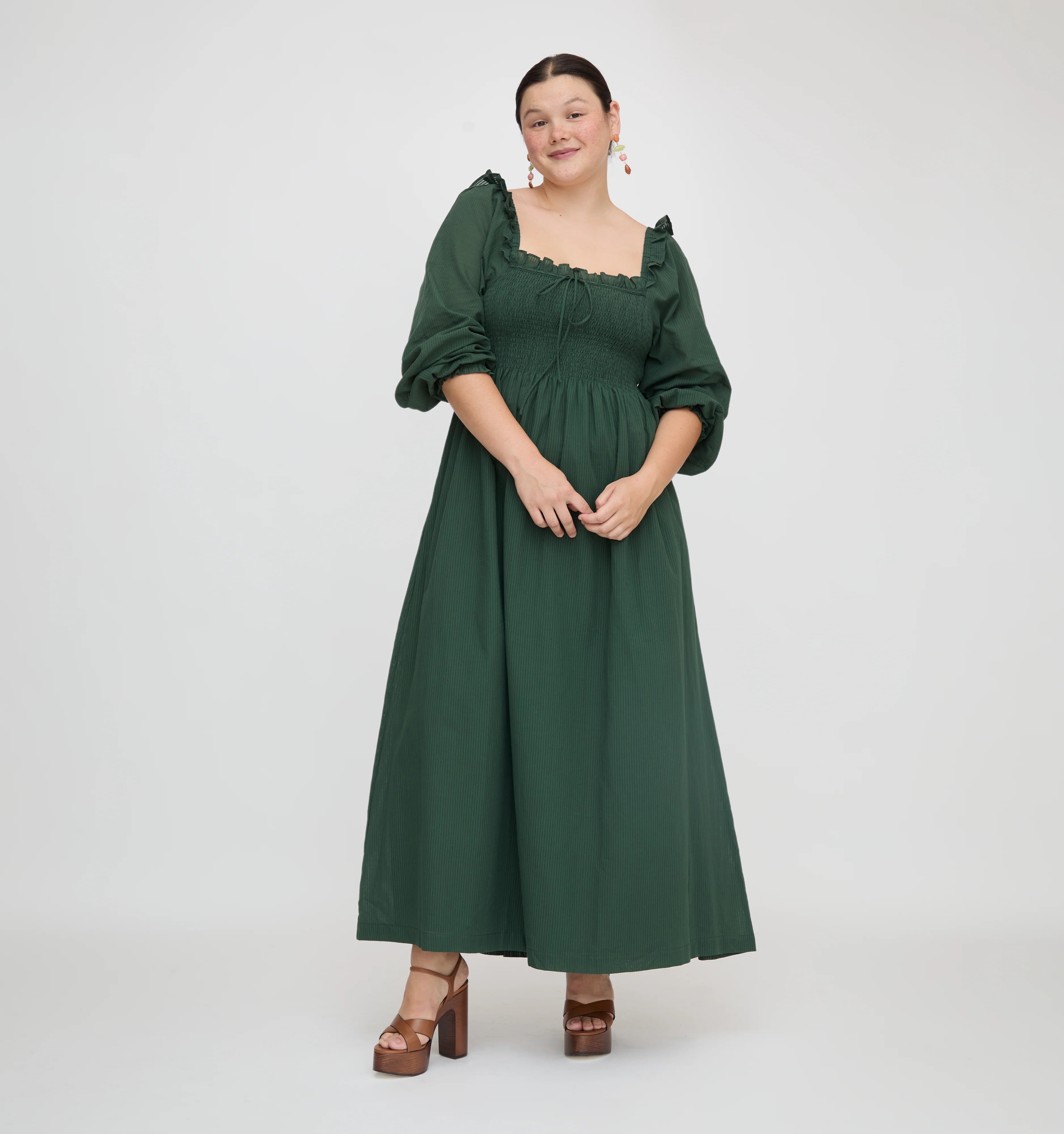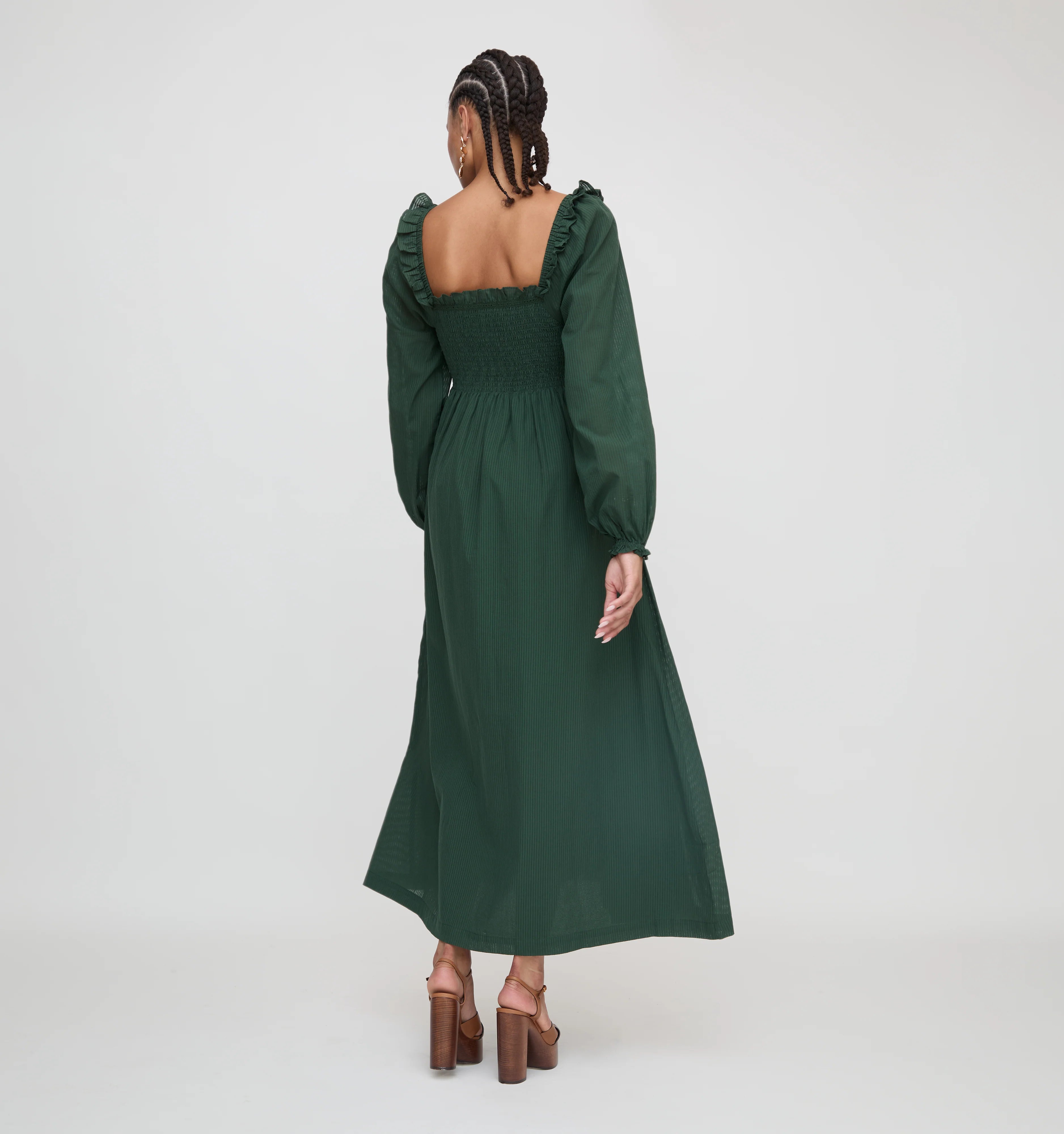 Meet the Scarlett Long Sleeve Nap Dress. Our Founder, Nell, calls Scarlett her “new Ellie”; a closet-staple she can wear a million ways. This Nap Dress features long sleeves, our proprietary, elasticated Nap Smocking, a skirt that hits around the ankle, puff sleeves and lace detailing at the neckline. Our favorite part? The tiny shoulder ruffle, a nod to big sis Ellie and her iconic shoulders.