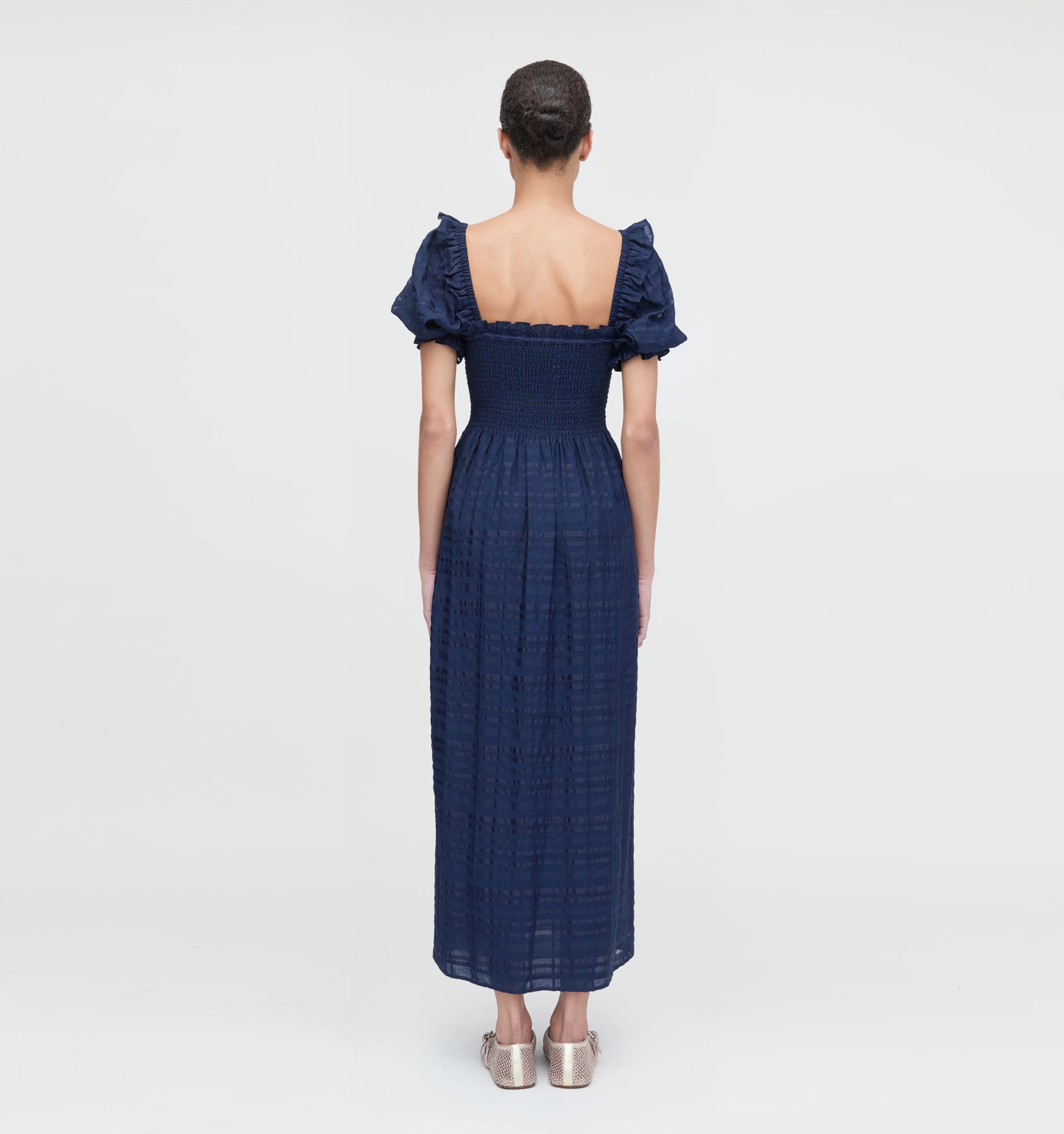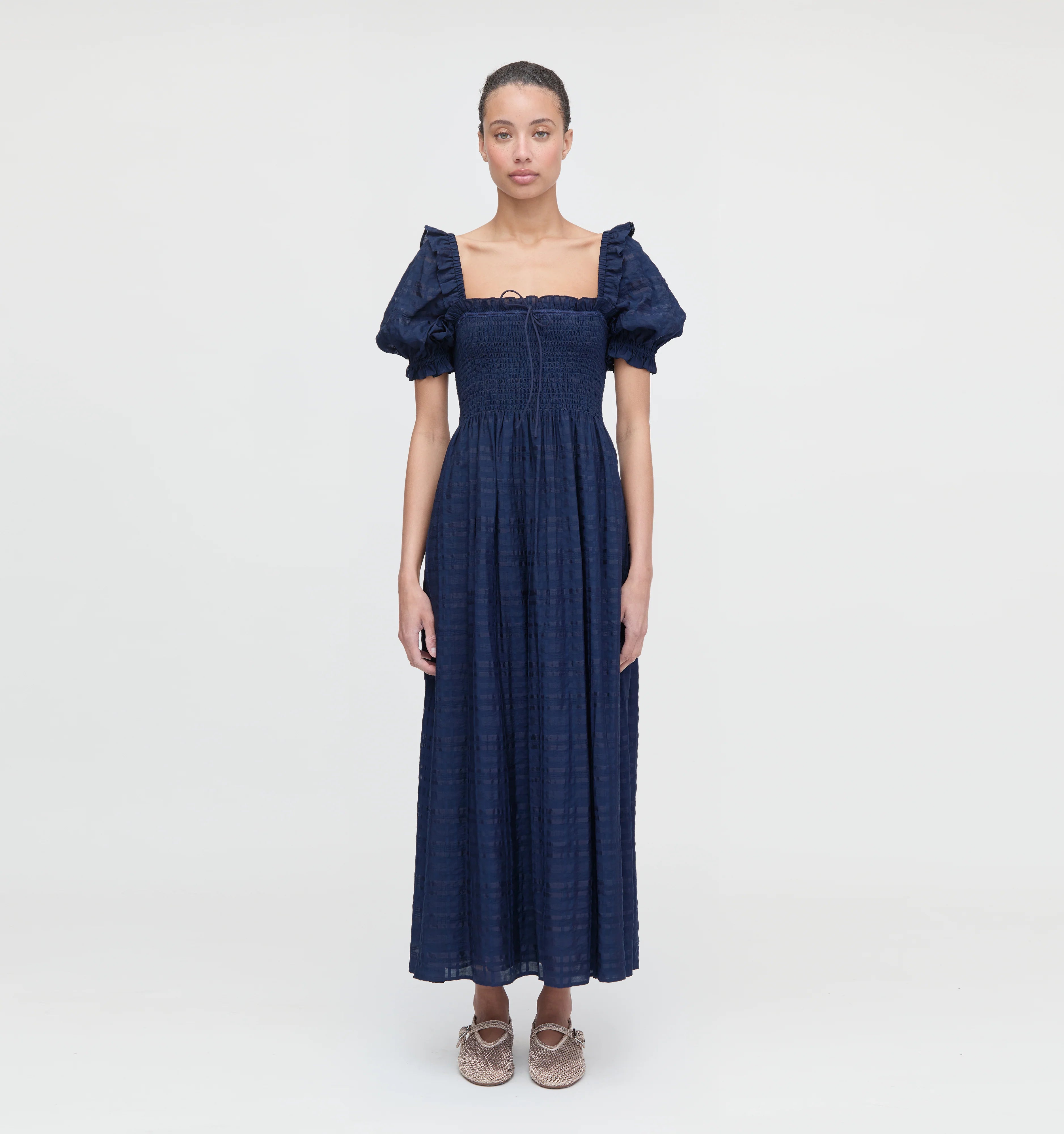 Meet the Scarlett Nap Dress. Our Founder, Nell, calls this dress her “new Ellie”; a closet-staple she can wear a million ways. Scarlett features our proprietary, elasticated Nap Smocking, a slim skirt that hits around the ankle, puff sleeves and lace detailing at the neckline. Our favorite part? The tiny shoulder ruffle, a nod to big sis Ellie and her iconic shoulders.