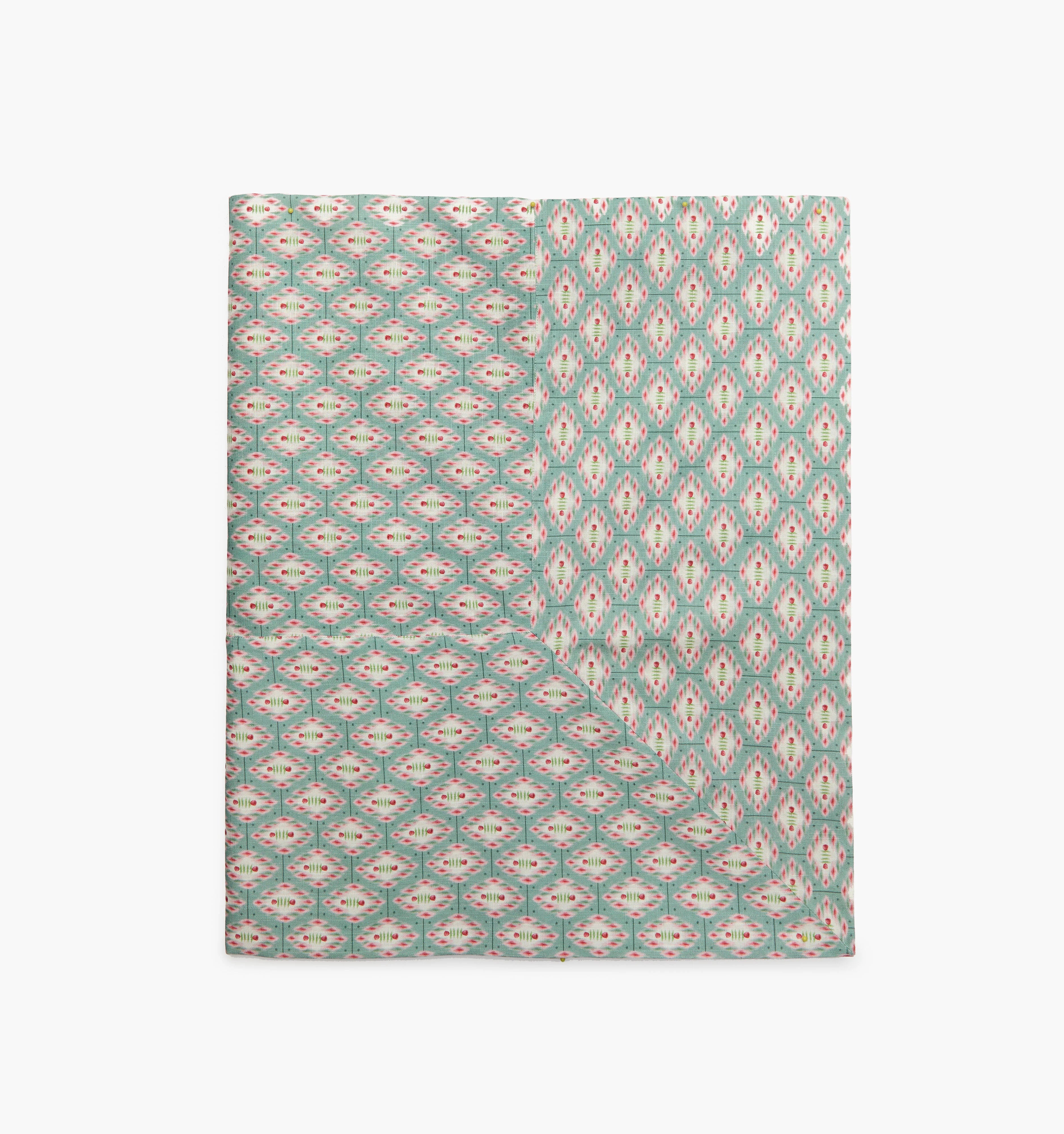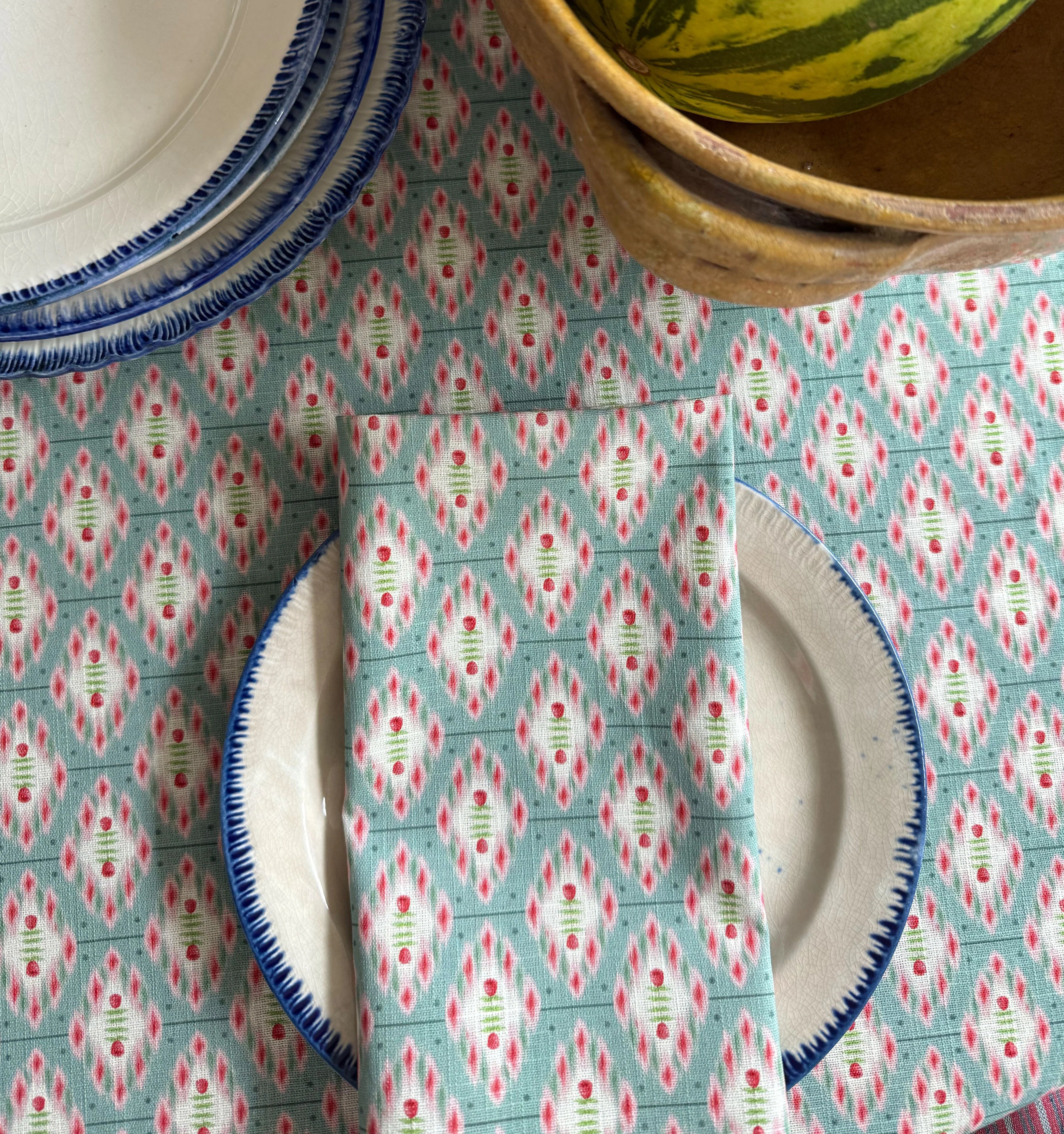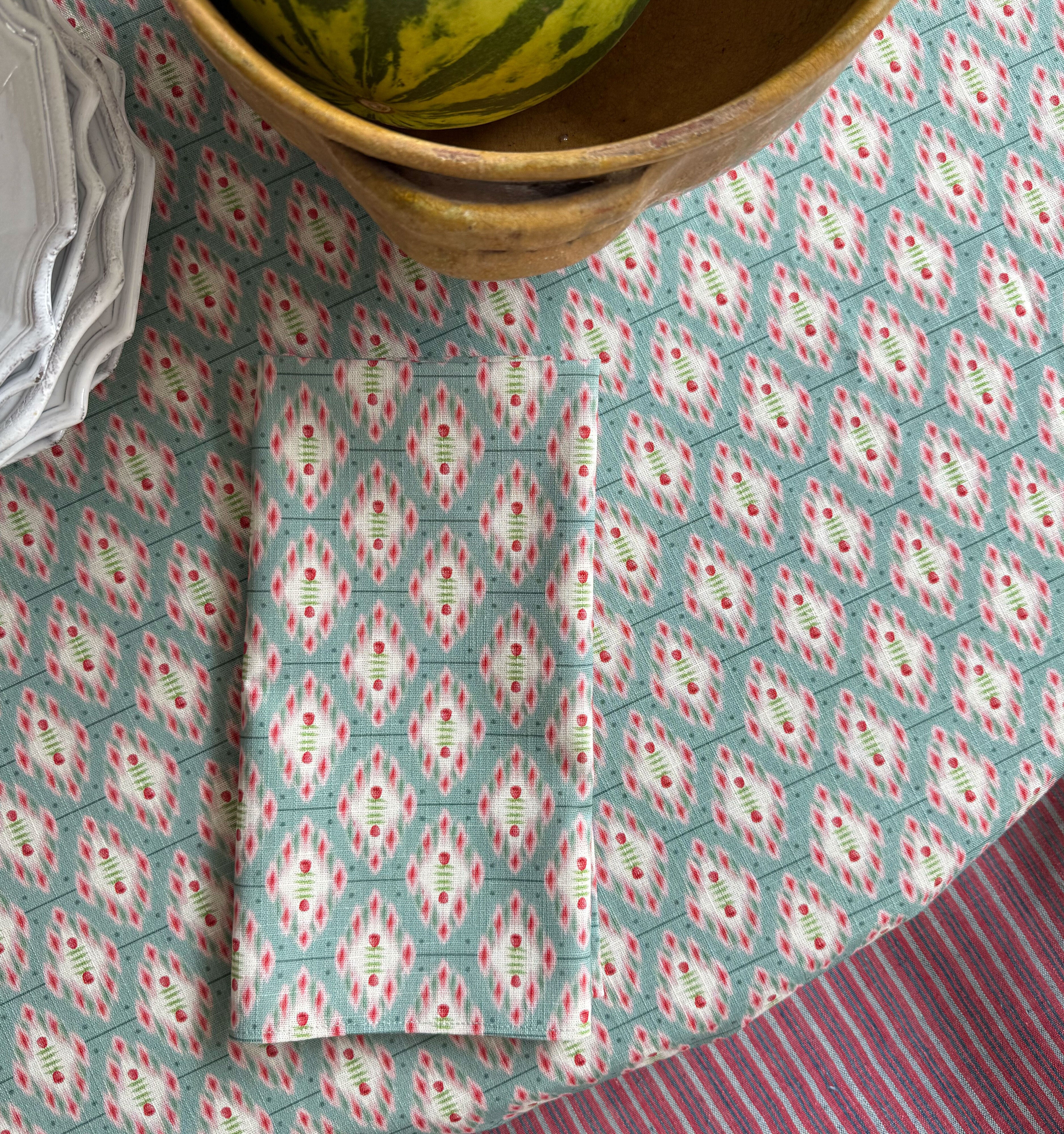 The Raspberry Ikat Tablecloth is made from 100% cotton and is machine washable for easy use.