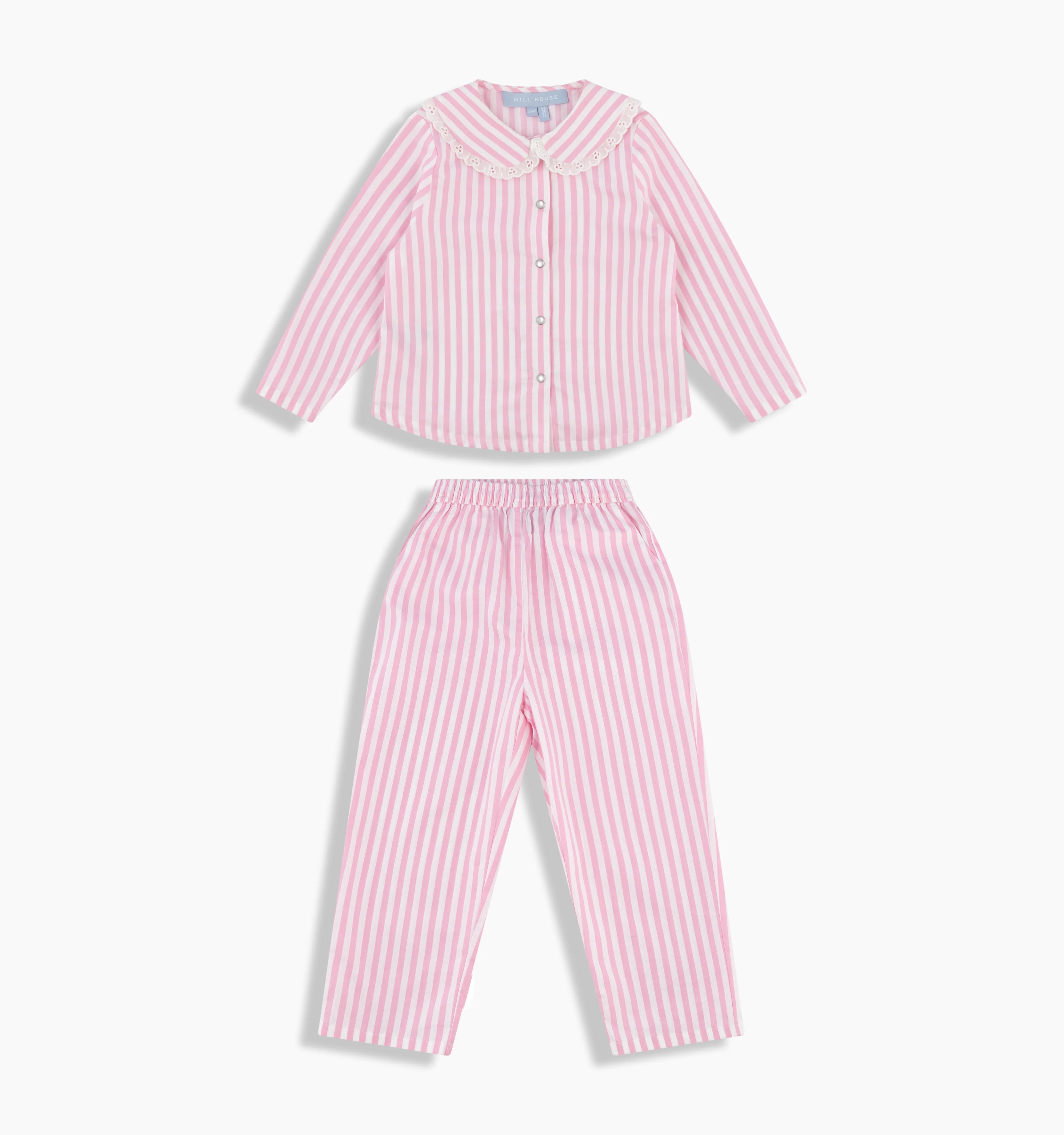 The top features a Peter Pan collar with lace-trim details while the pants have a cropped kick flare and an elastic drawstring waistband for a flexible fit.