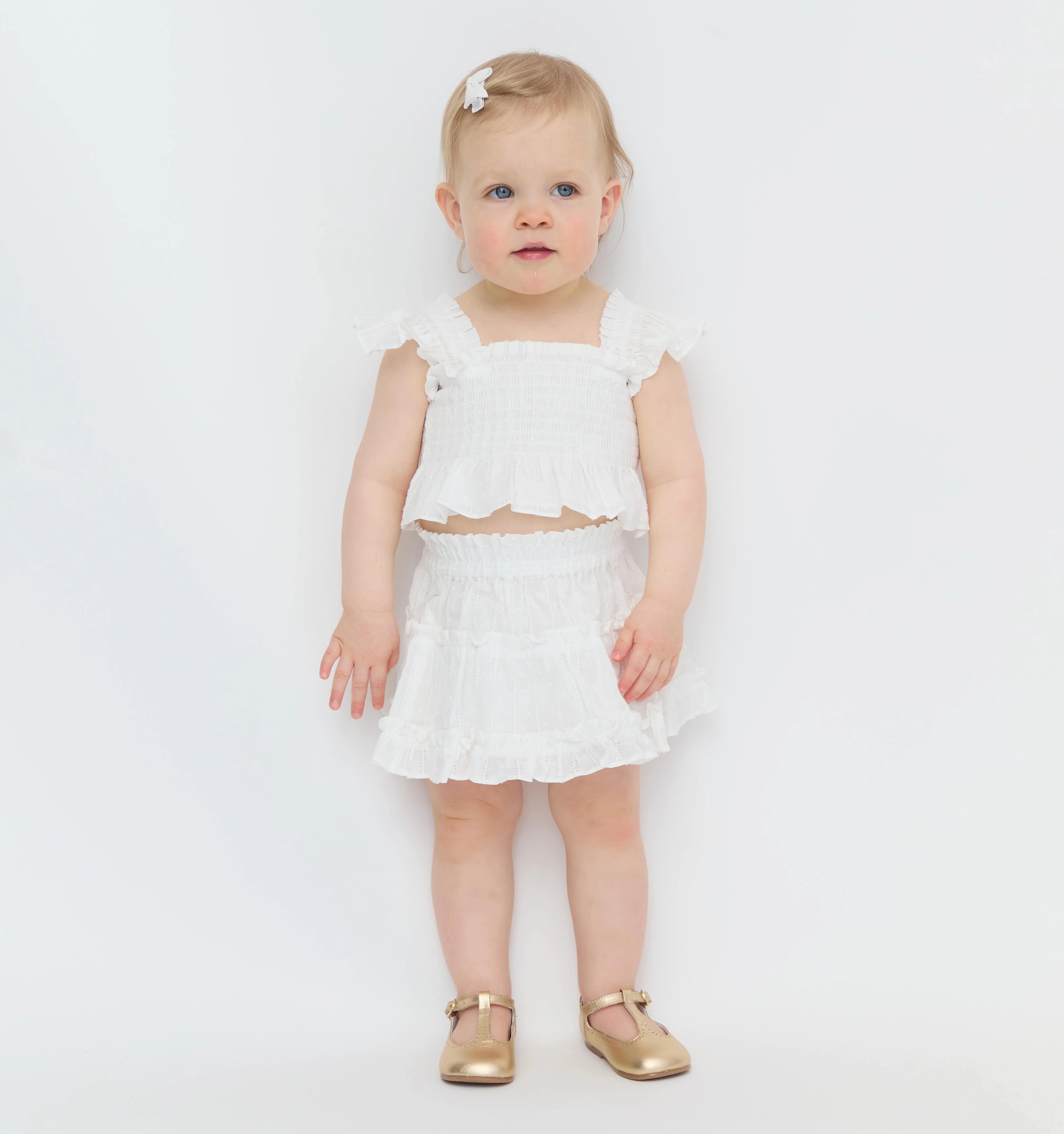 Our best-selling Paz Nap Top and Paz Skirt for adults, now made mini. Featuring a fully smocked top and a skirt with an elastic waist and ruffled hem, the set is a cute pick that works on the playground, in family photos, and for everything in between. Mix and match with their favorite tops and bottoms for even more outfit potential.