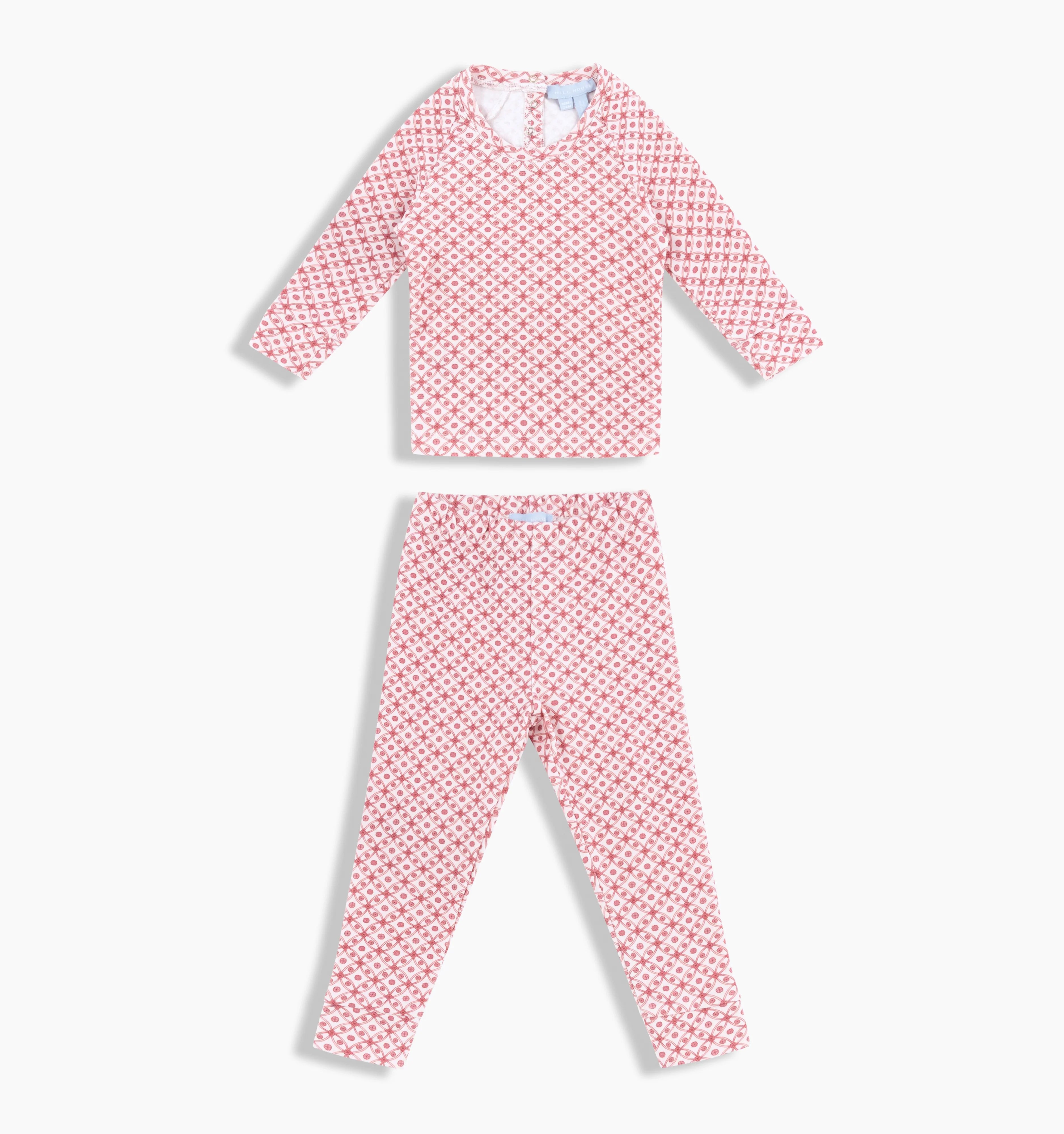 Circular Lattice is a geometric print featuring a small-scale lattice motif in tonal shades of pink.
