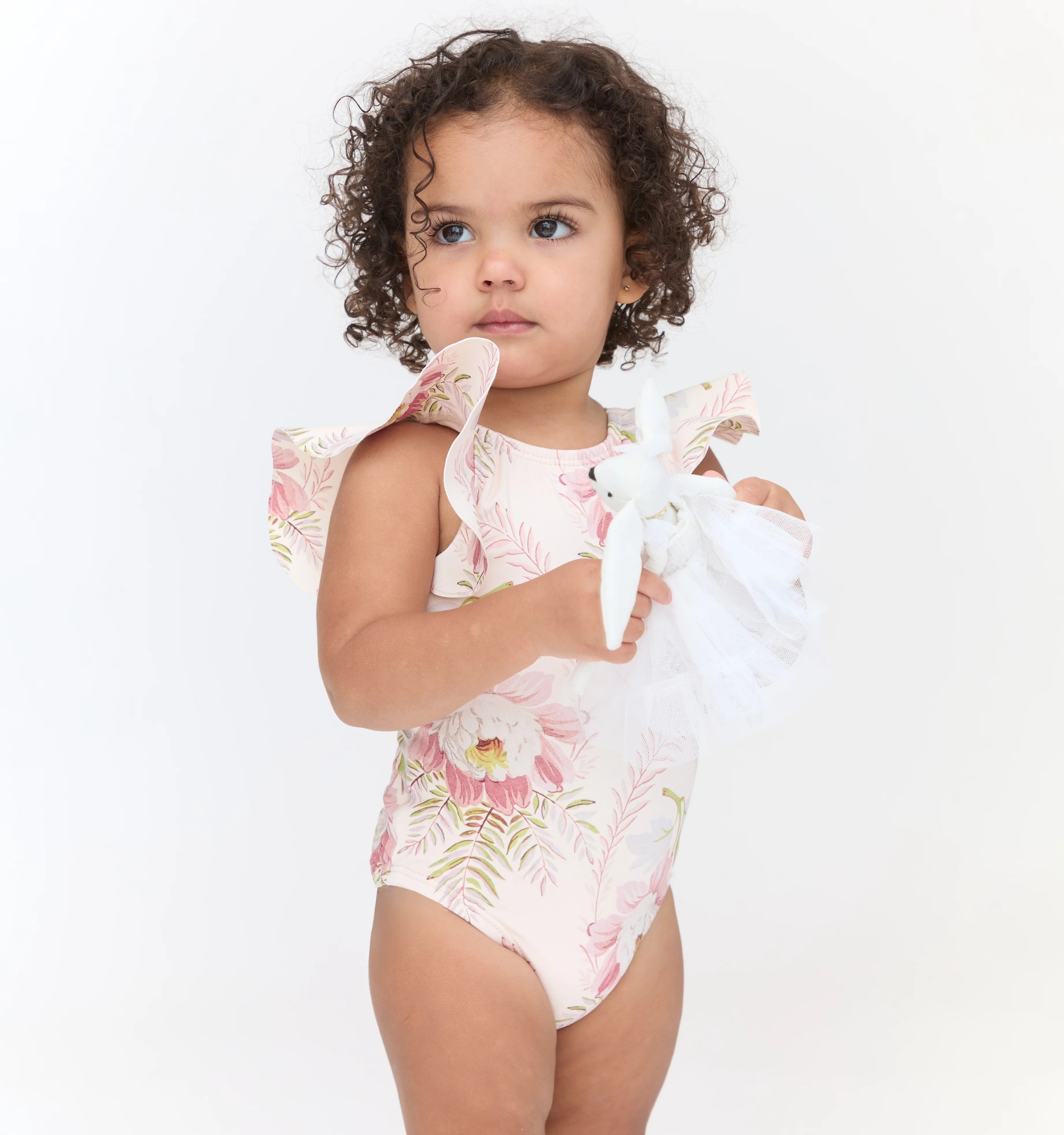 At last, Tiny Swim. We took our best-selling Adult Rosie One-Piece and converted her into a practical and pretty one-piece for the tiny in your life. Featuring our signature Ellie Nap Dress® ruffle sleeve, a high scoop neck and adjustable, self-tie bow back give this little one a little something extra.
