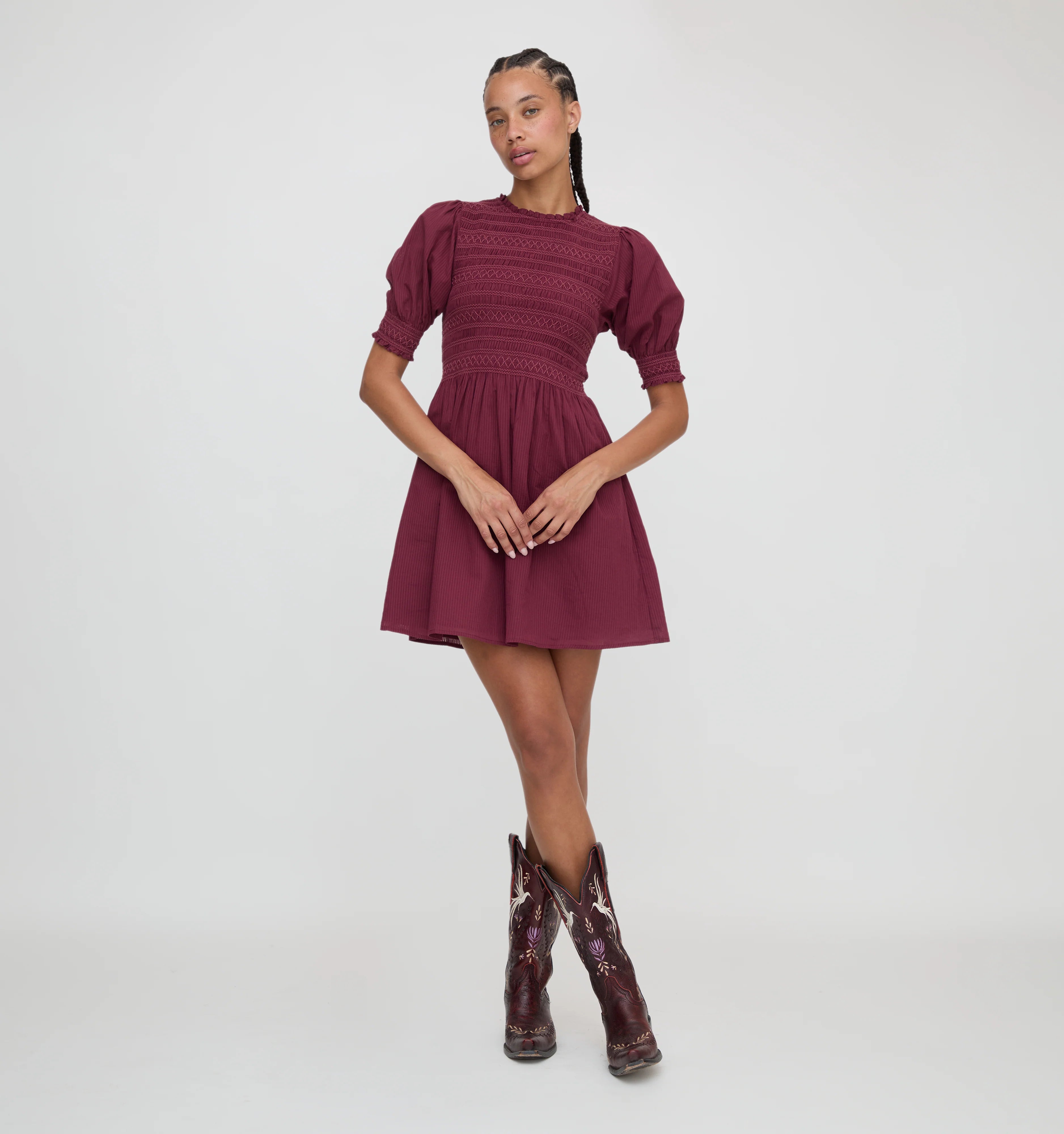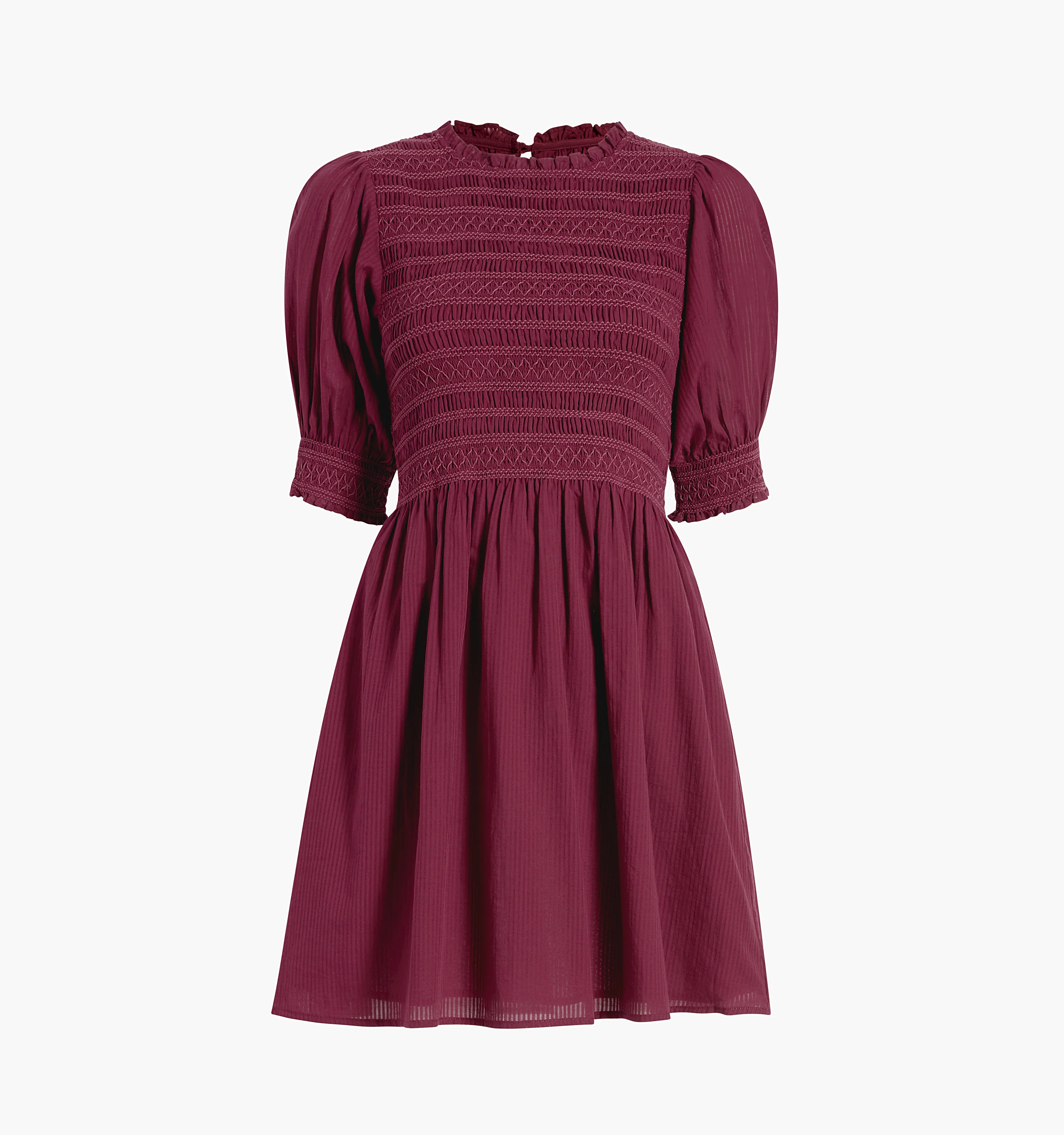 Meet Vivi, a Nap Dress with a fresh take on our signature elasticated smocking. With smocking at the bodice and sleeve cuffs for a flexible, comfortable fit, Vivi also features decorative woven details, a high neckline and midi-puff sleeves.