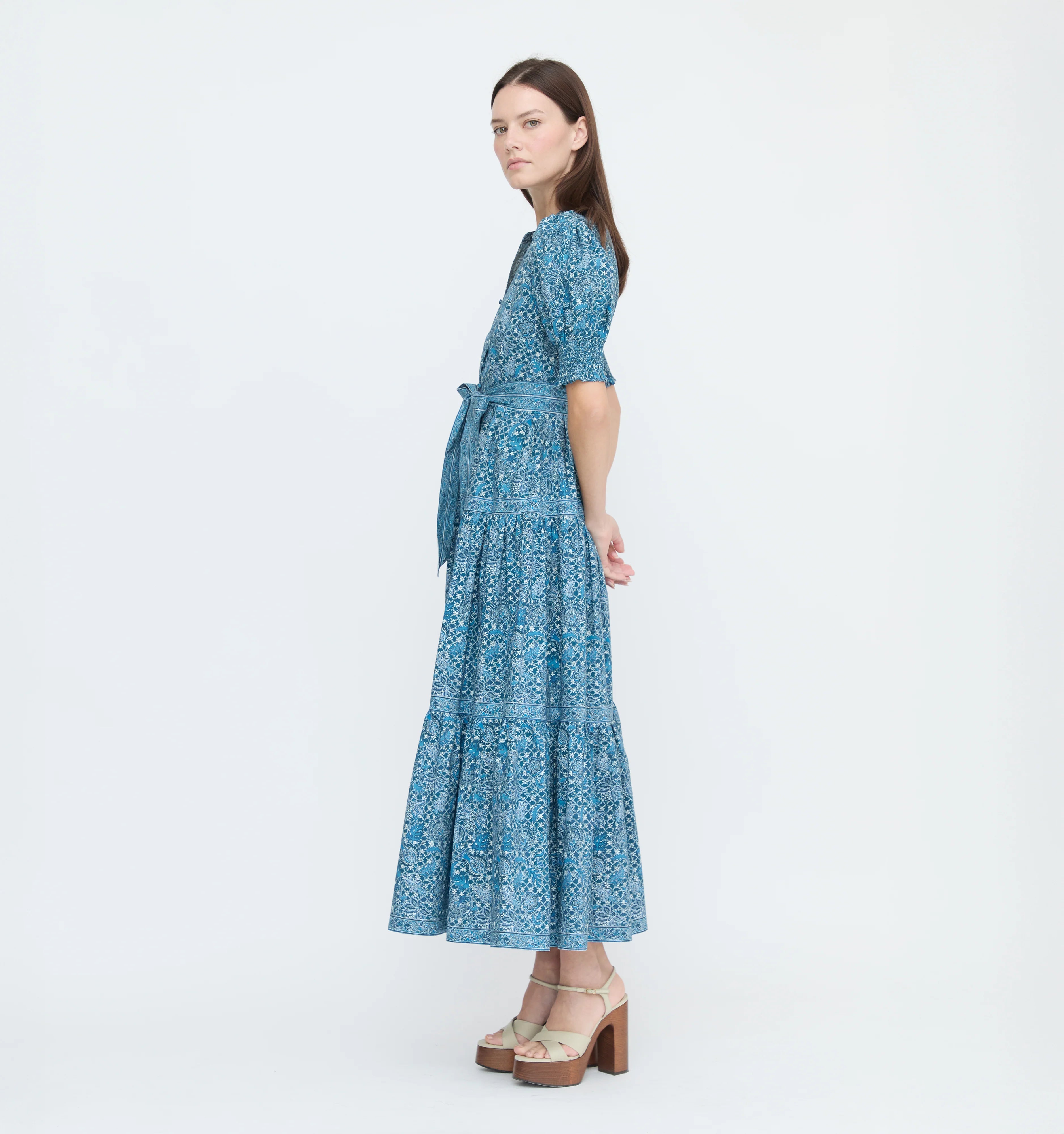 Meet the Yara Dress. Yara is a relaxed shirt dress featuring a removable waist sash, elasticated puff sleeves and a flowy maxi skirt.