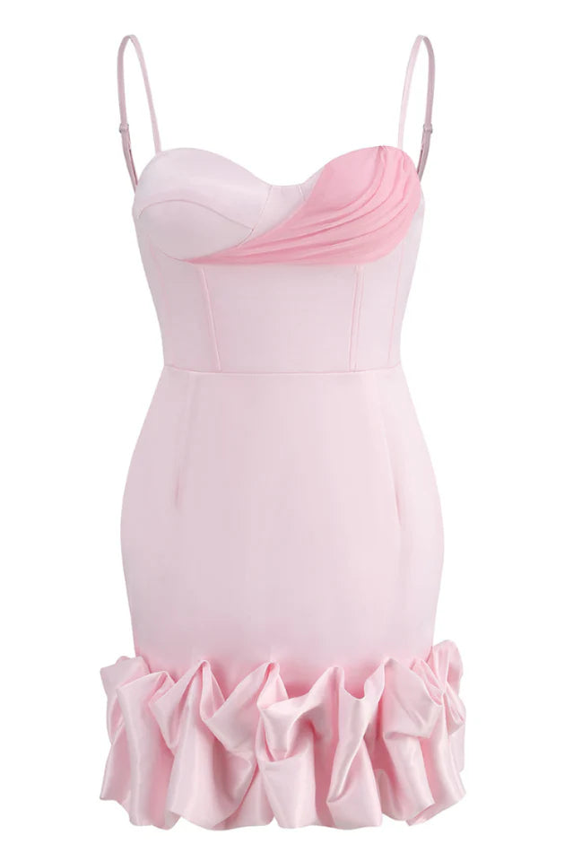 This fitted bustier mini dress is a perfect choice for a romantic date or a stroll at night at a beach resort. The drapery on the bodice makes the look airy and playful while the fitted cups and bones corset in the upper part reveals sexy curves of the body. Lined.