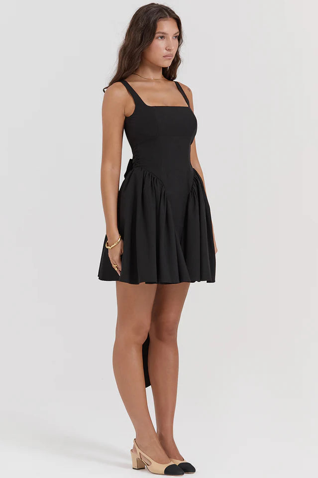 The dress for warm Spring and Summer days, our 'Florianne' mini dress has the prettiest silhouette. Soft and feminine, it features a corseted bodice and Tuens to reveal an open back complete with an oversized bow for feminine drama. We love the figure defining seams and 'Florianne' has a pretty voluminous skirt that's fitted with a discreet tulle fabric to hold the shape perfectly.