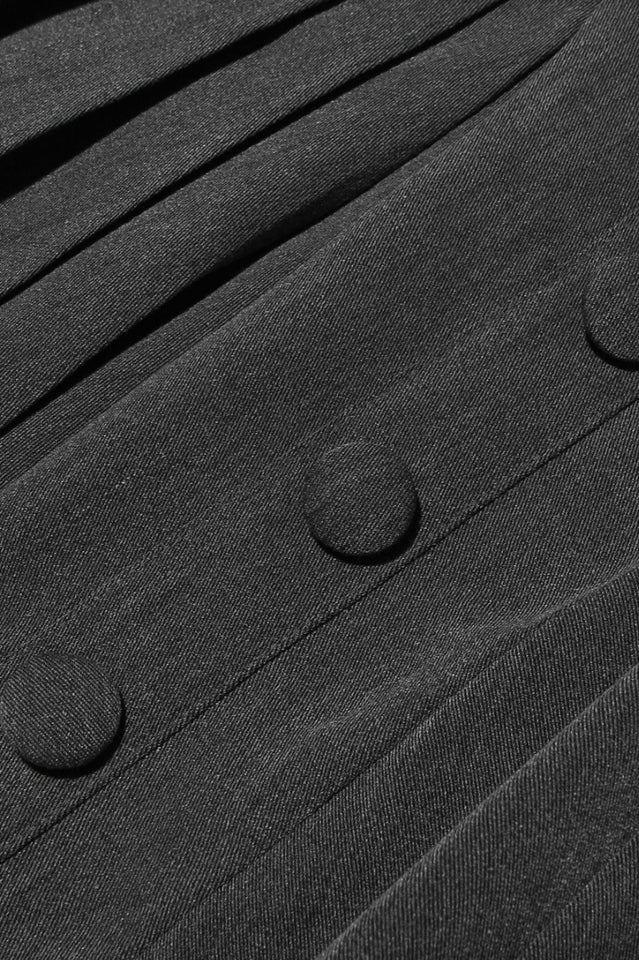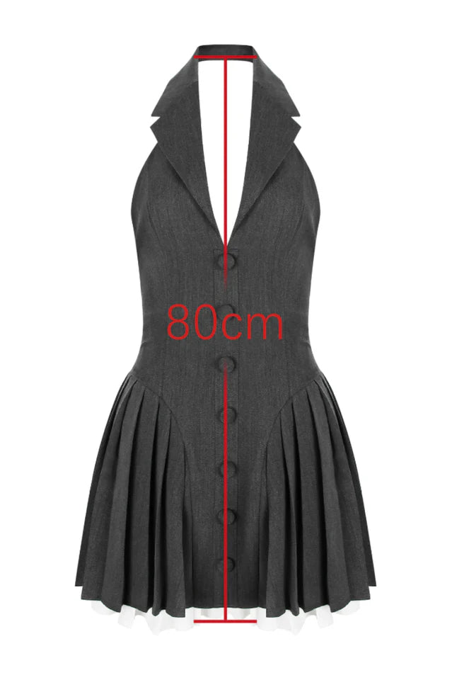 Elevate your style with our Hazel dress! Featuring a preppy style blazer dress with collared halter neck design, layered with crisp white trim and a sophisticated gray hue, this dress exudes timeless charm. The pleated skirt, supported from within, ensures a flawless silhouette, while the fabric-covered buttons add a touch of classic elegance. An invisible zipper ensures a seamless finish. Perfect for daily styling, this dress effortlessly combines refined preppy elements with modern sophistication. Make it a staple in your wardrobe and embrace its versatile allure.