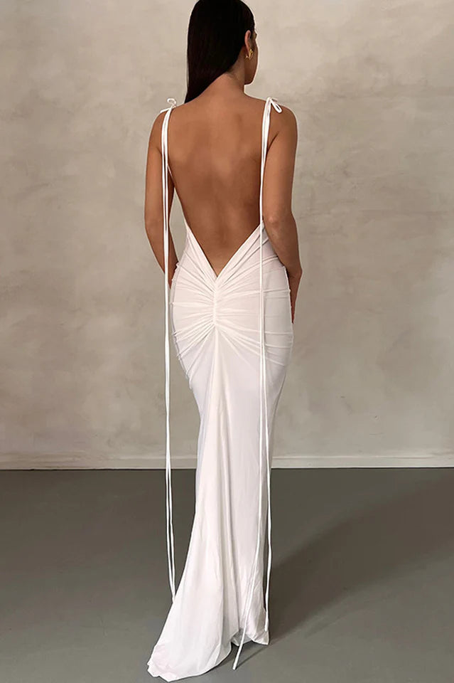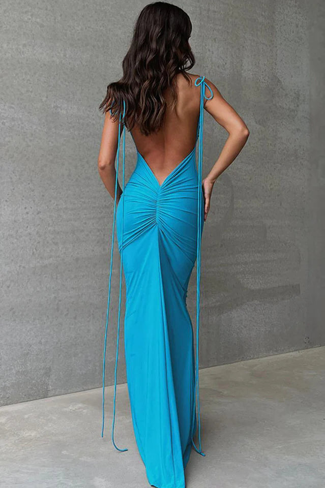 This Elegant Slip Backless Slim Maxi Dress is the perfect addition to your wardrobe. Crafted from a blend of spandex and polyester, this dress features a flattering empire waistline and spaghetti straps. The silhouette is slim and the fabric is a soft knitting. The dress is decorated with patchwork and has a pullover closure. The length of the dress is floor-length and the neckline is a stylish slash neck.