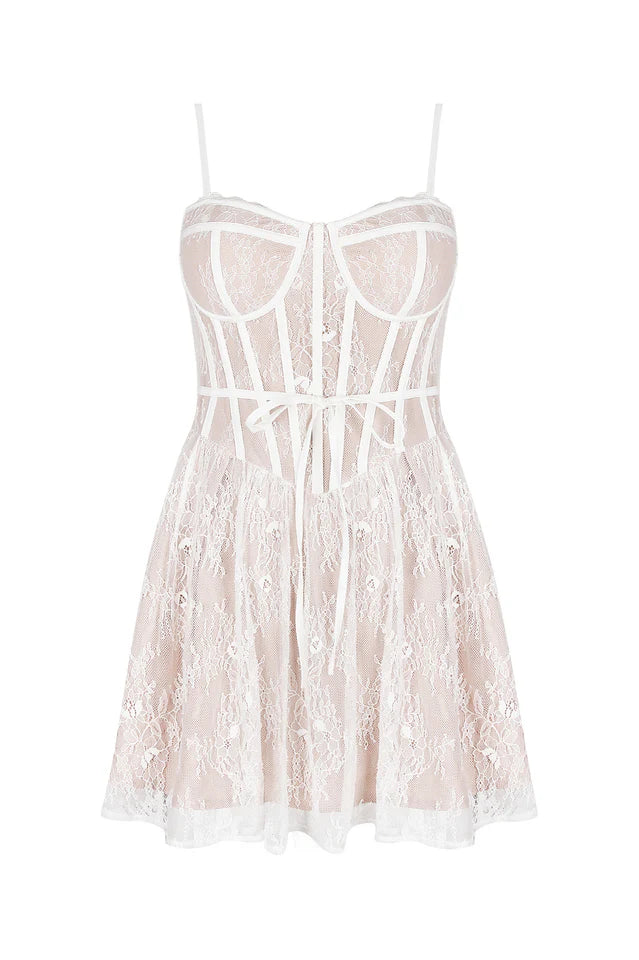 Louisa Vintage Cream Lace Mini Dress is made with such attention to detail that it'll be talked about at every event. It's gorgeously made from deliciously delicate lace in vintage cream and the cafe au lait mesh lining layer ensures perfect coverage. The pretty bodice has supportive underwired cups and it's boned throughout to snatch and sculpt the waist. We adore the dainty bow that sits at the centre.
