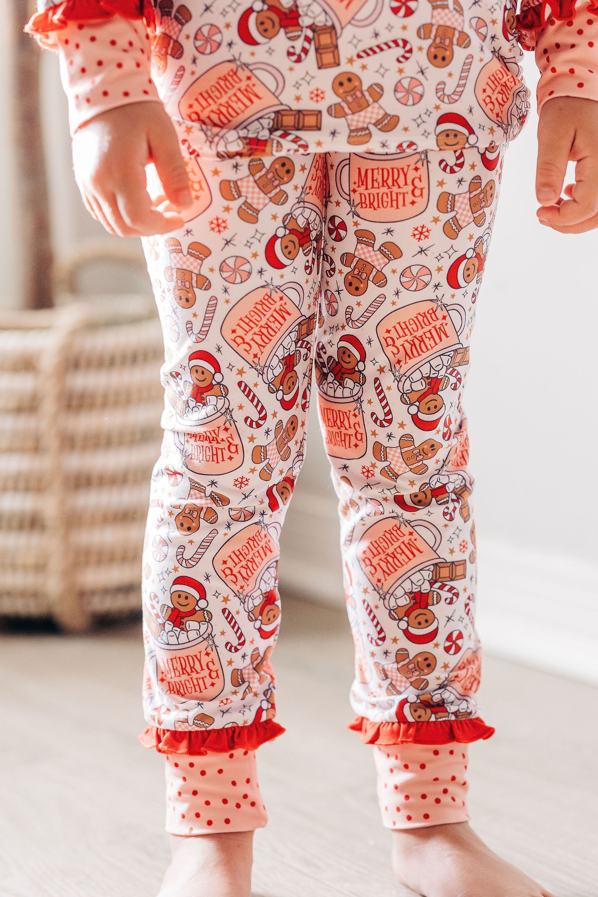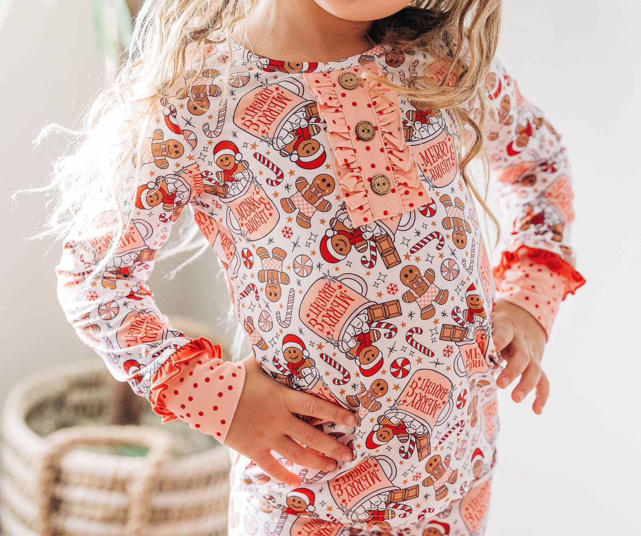 Wrap your little one in festive fun with the Girls Loungewear Set - Have A Cup Of Cheer. This playful holiday design features pink, red, and brown tones showcasing adorable gingerbread and hot chocolate motifs. It’s the perfect cozy outfit for chilly days spent relaxing or celebrating, combining comfort with joyful seasonal style.
