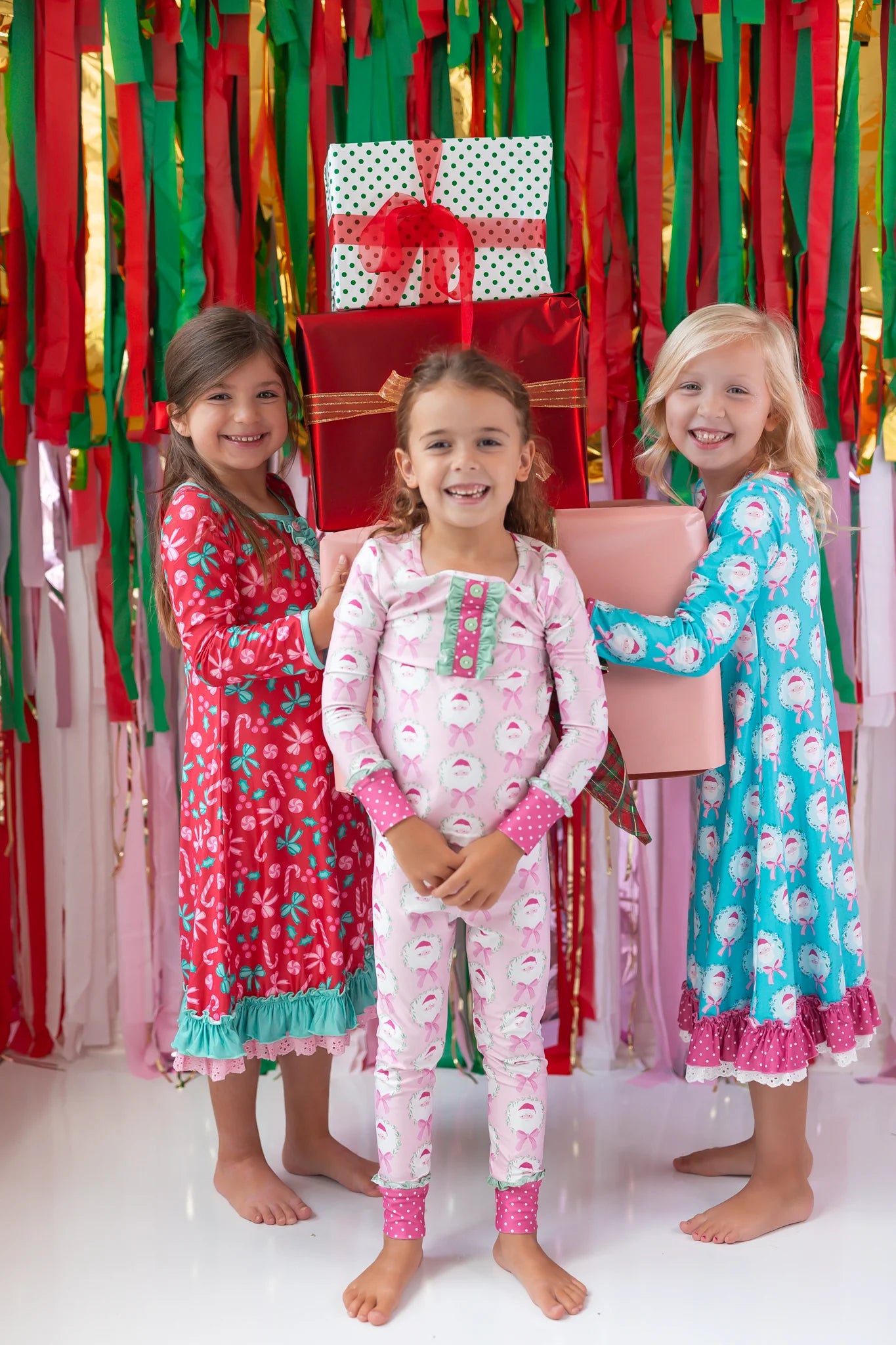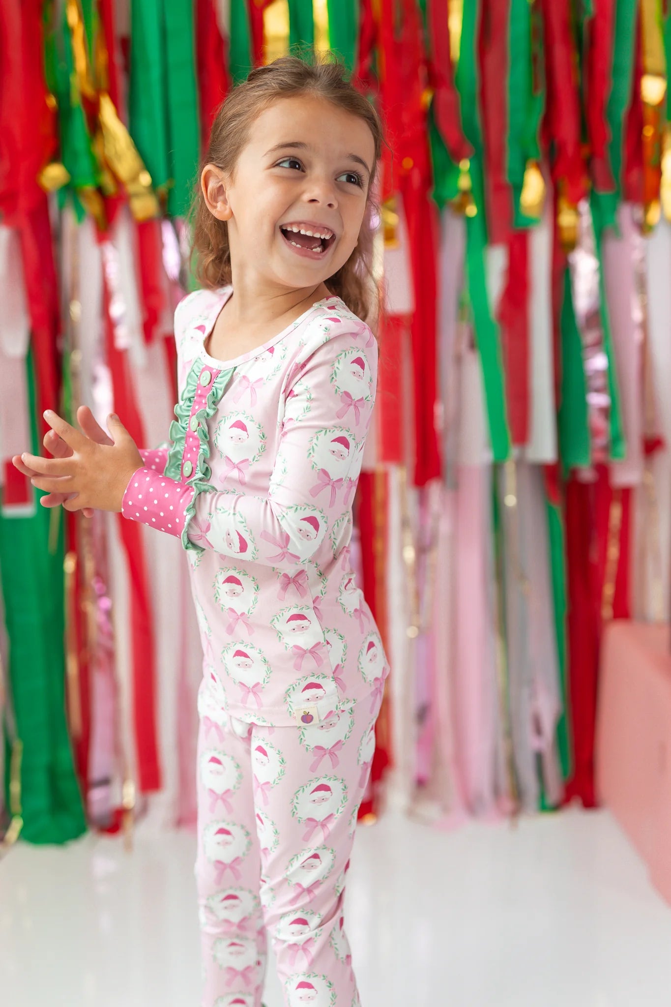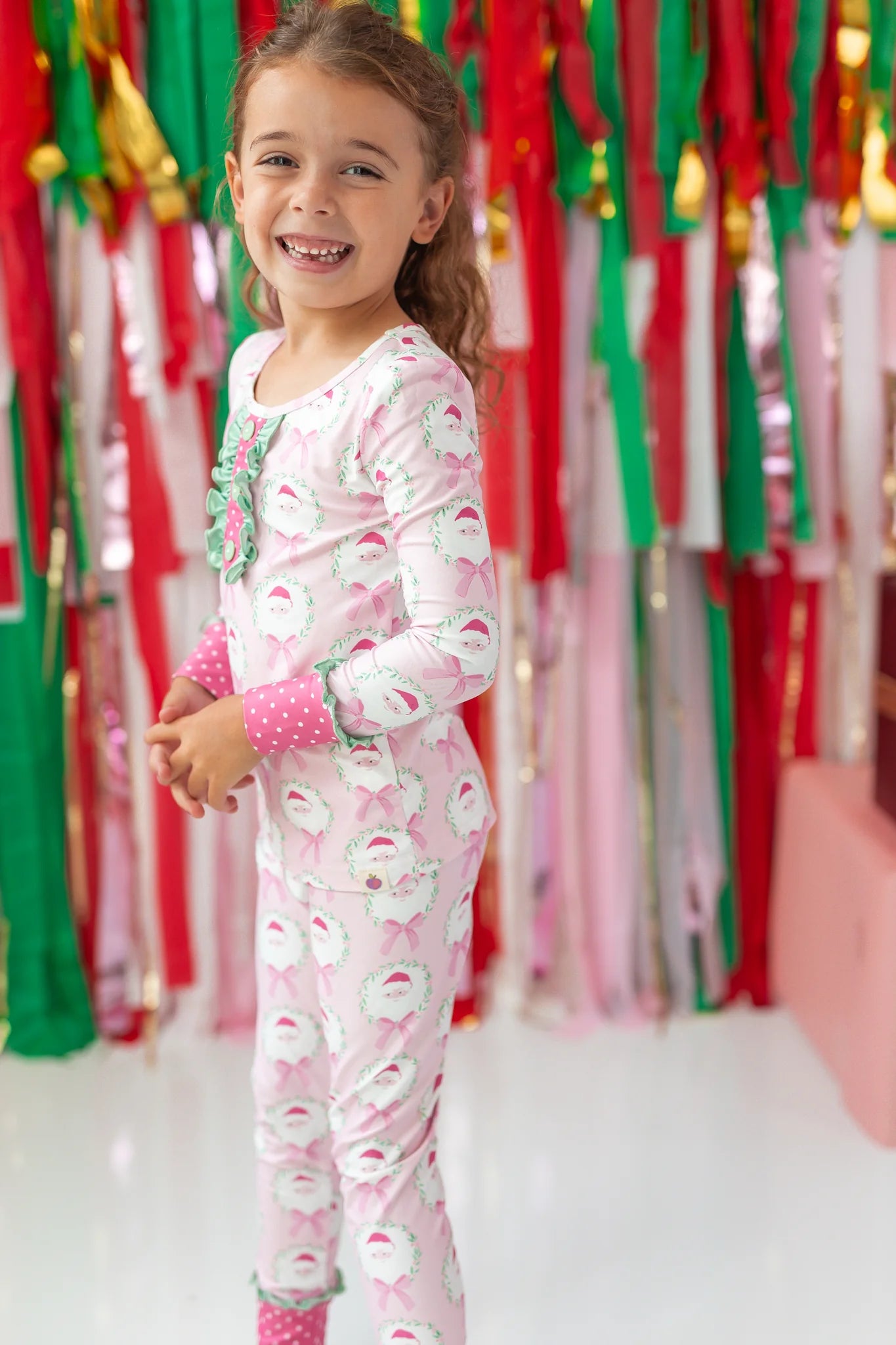 This playful girls' loungewear set in the sweetest pink features an all-over Santa pattern trimmed with fun, whimsical prints perfect for the holiday season. Soft and cozy, it keeps your little one comfy while adding a festive touch to their downtime wardrobe. Ideal for girls who adore pink and holiday cheer!