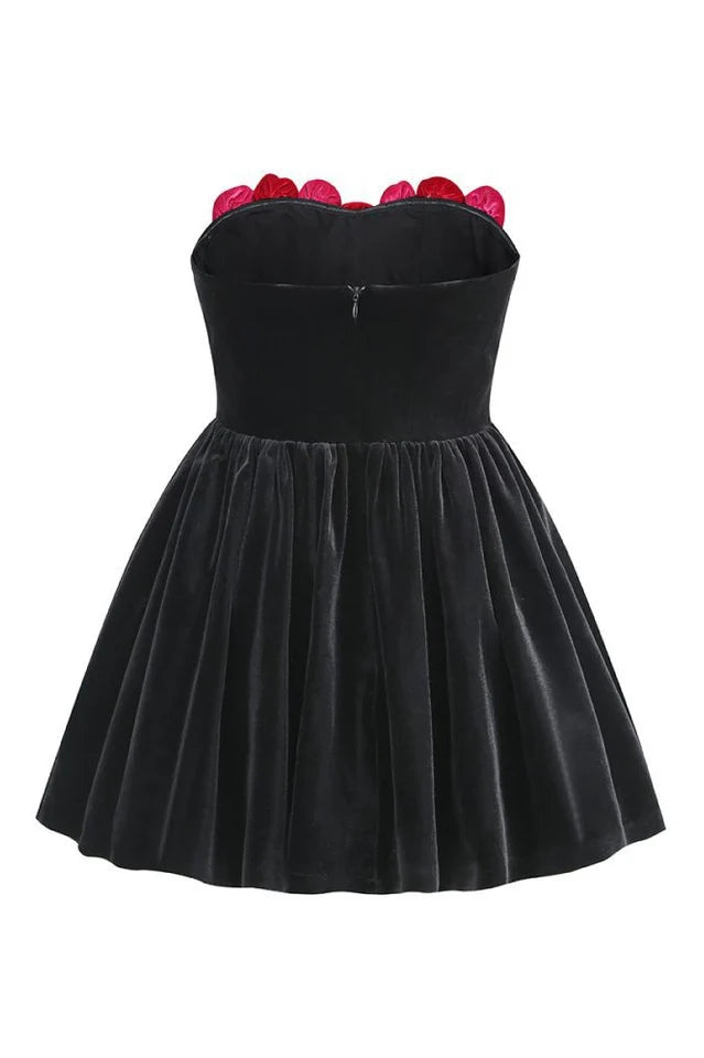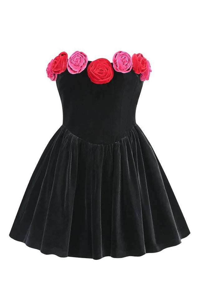 Adorned with intricate floral patterns in luxurious velvet, this dress exudes grace and allure, creating a captivating ensemble. Crafted with sumptuous materials, the dress enhances your charisma, adding an irresistible allure and sophistication to your overall look.