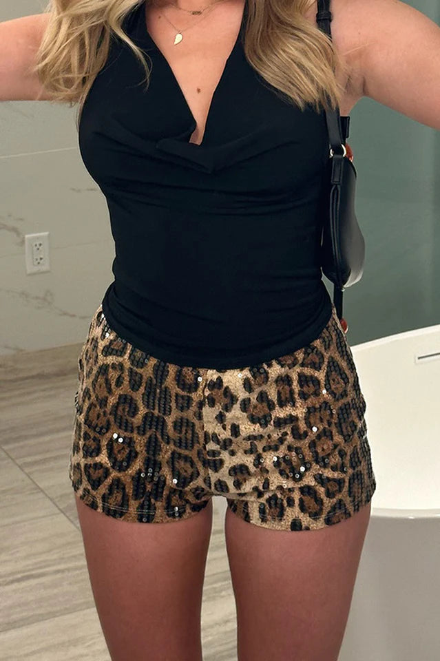 Experience the thrill of turning heads with our My Body Like It Mini Shorts. Show off your wild side with a bold leopard print and sparkling sequin decoration. Made with high-quality broadcloth, these shorts are as comfortable as they are stylish. Upgrade your wardrobe and embrace your confidence today!