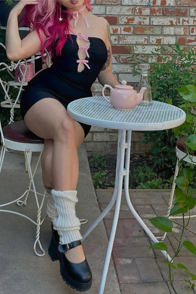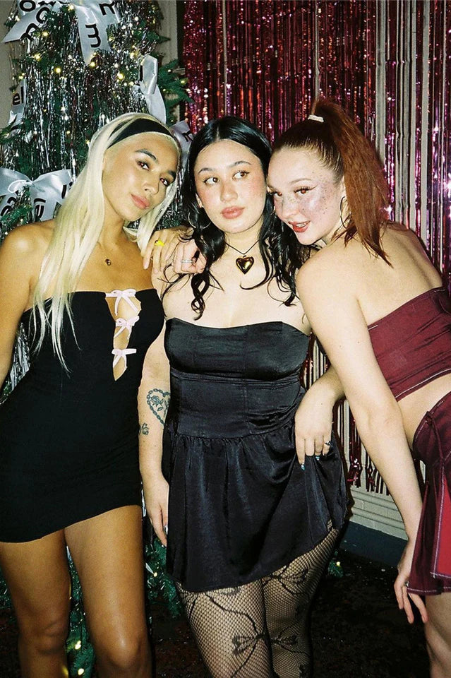 We've got your girls' night 'fit covered. Our Novara dress features a strapless bodycon design with pink bow detailing in a mini length.