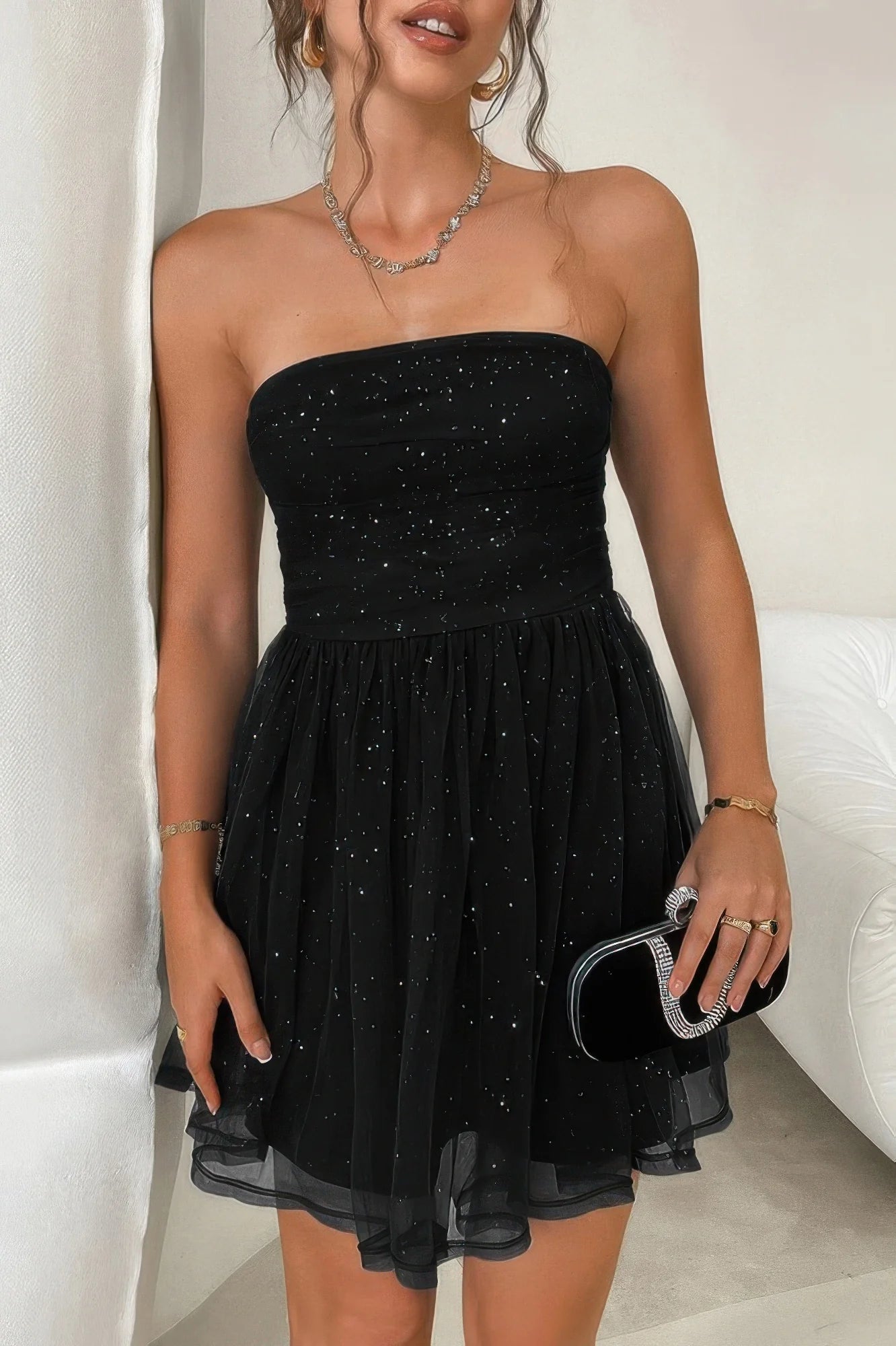 Features an off-shoulder neckline for an elegant look