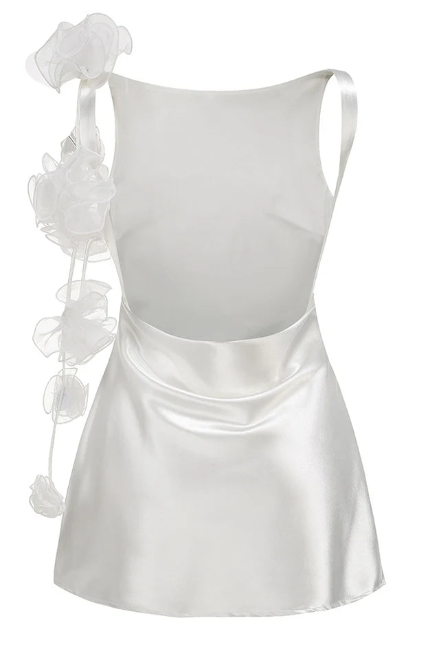 This elegant and feminine Open Back Flower Mini Dress is the perfect addition to any wardrobe. Constructed with an open back design and adorned with beautiful flower accents, this dress will make you stand out in any setting. Perfect for a night out or a special occasion, this dress is sure to impress.