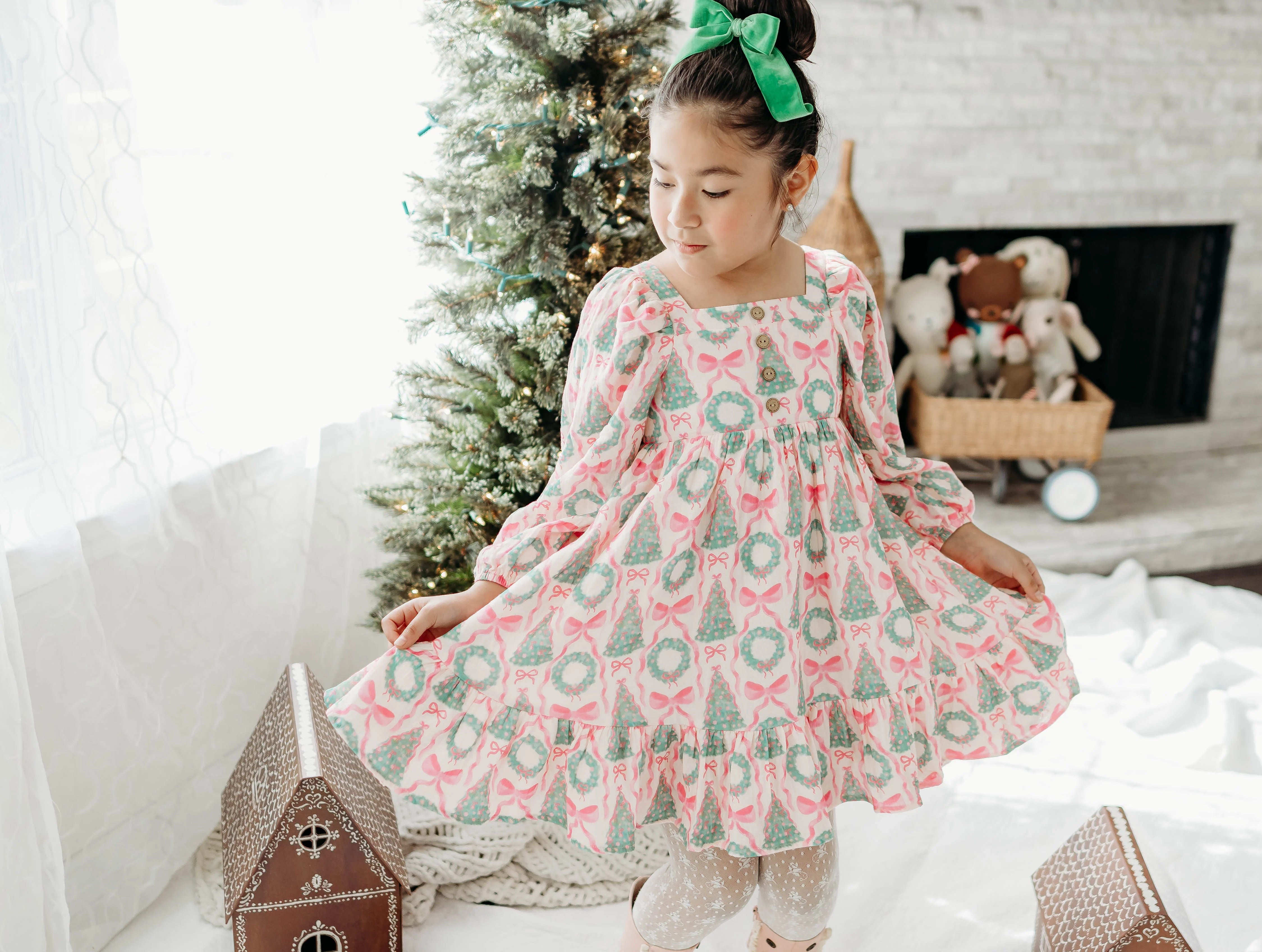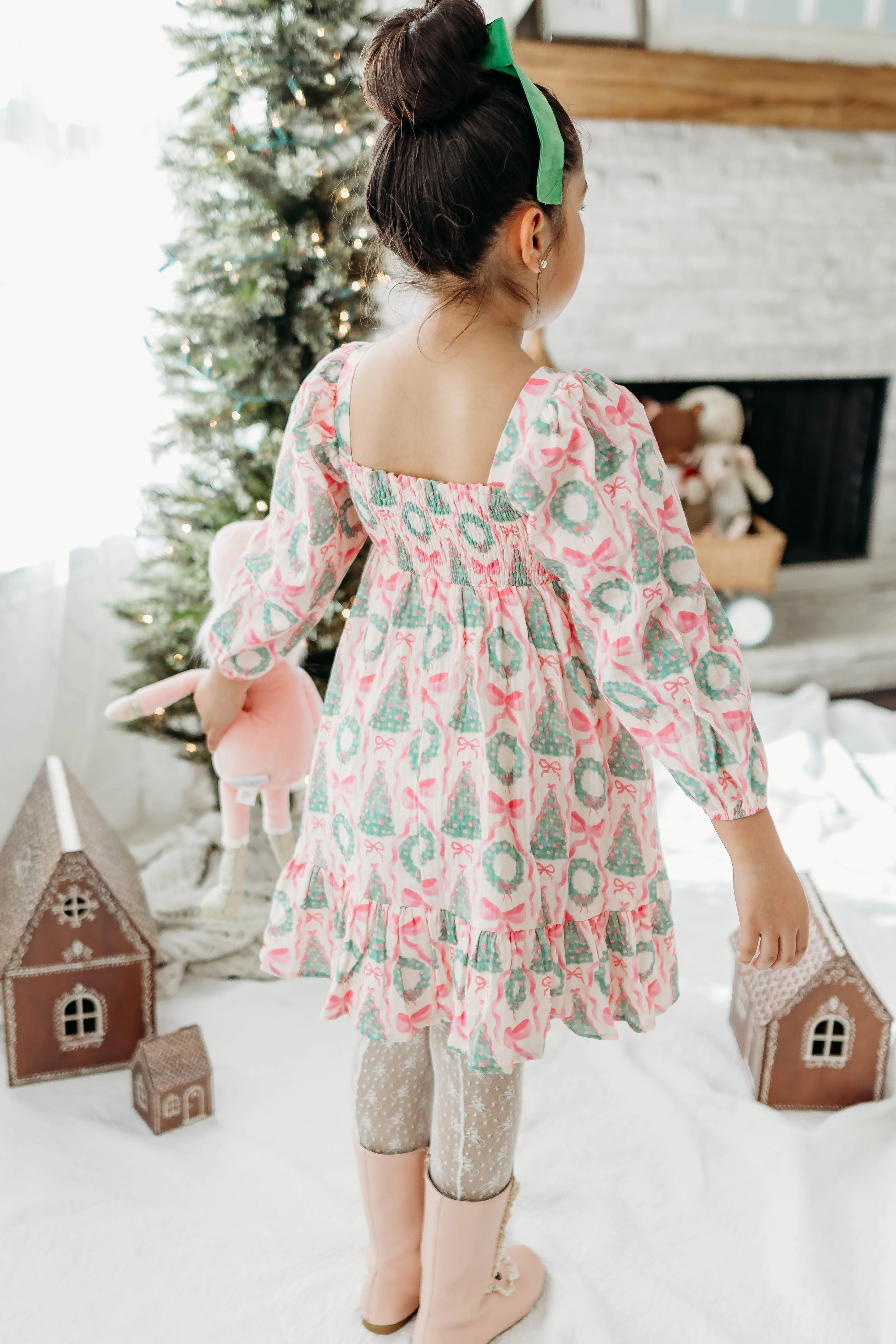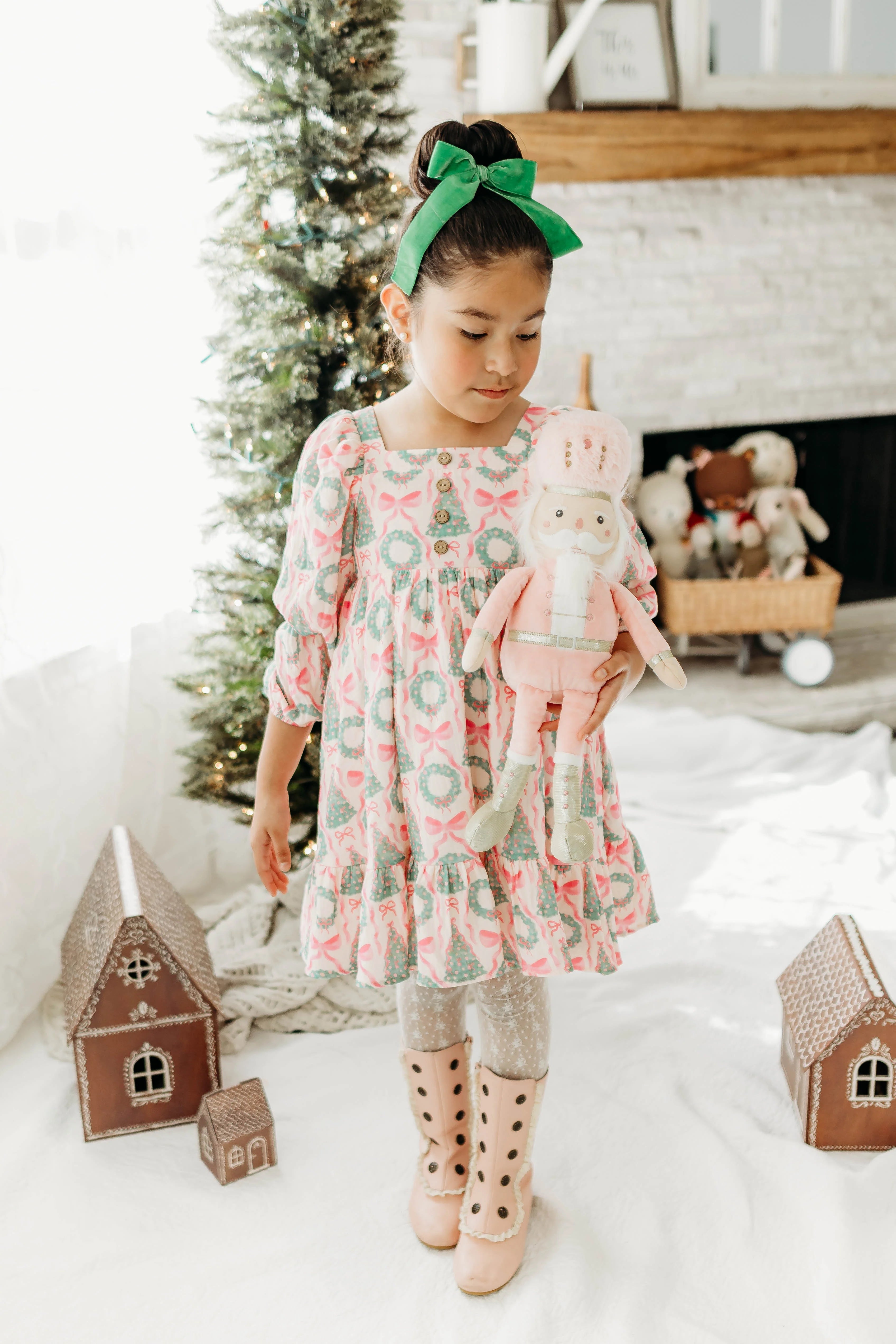 She’ll look oh-so-sweet in the Puff Sleeve Gauze Dress – Wreath & Wonder, with its festive wreaths, bows, and twirl-ready ruffle hem. Light, comfy, and full of holiday charm—perfect for parties, photos, and magical memories!