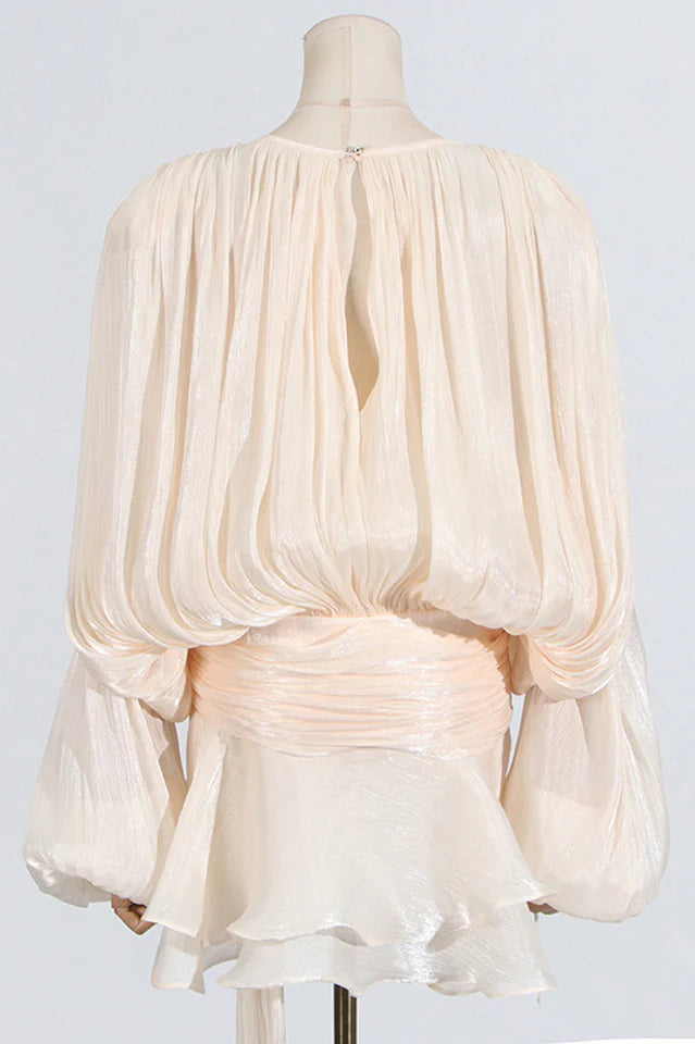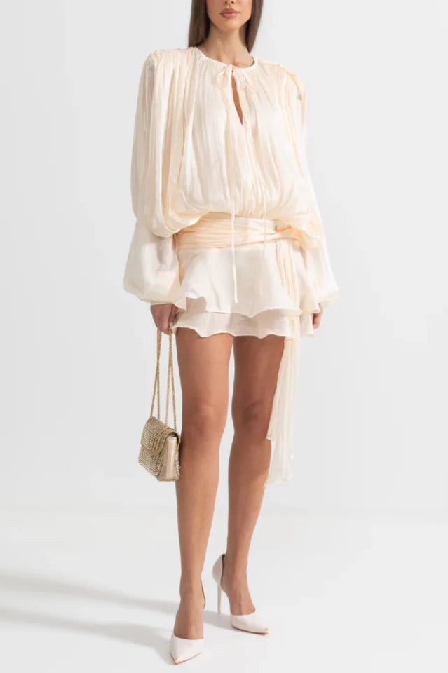 Apricot Ruffled Long Sleeved Mini Dress With Flowing Silhouette