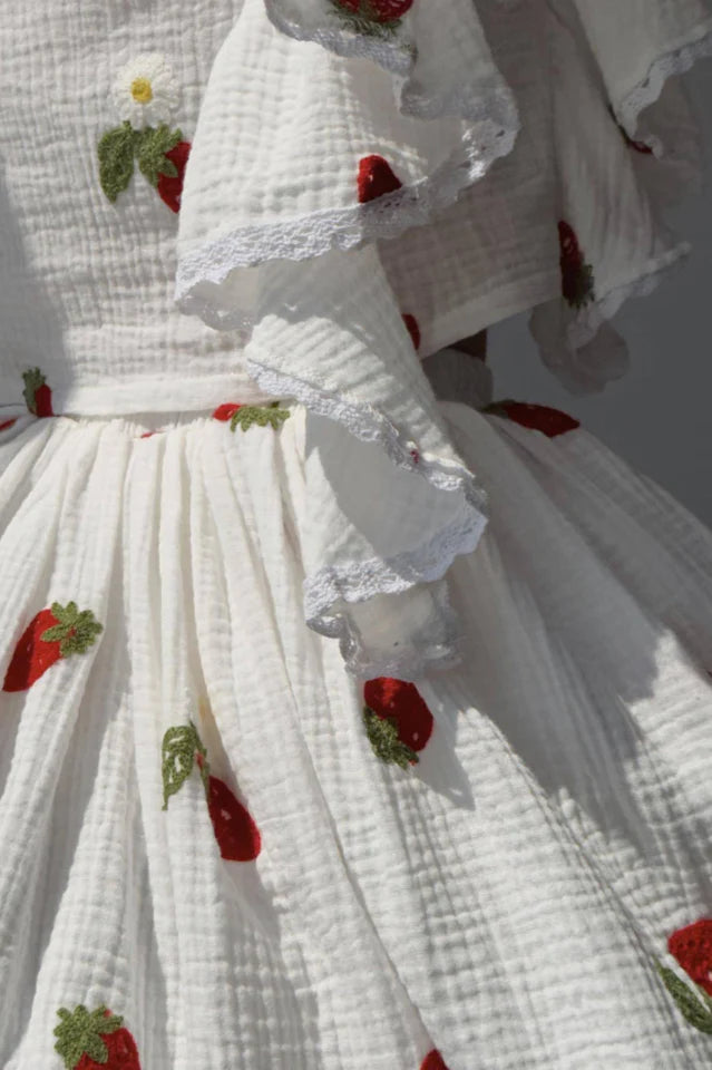 Ruffled Strawberry Print Skirt Set is suitable for many occasions. The simple design makes the boring season colorful and interesting. A variety of matching options make you confident and beautiful. Please read each element of the sizing guide carefully before choosing a size.