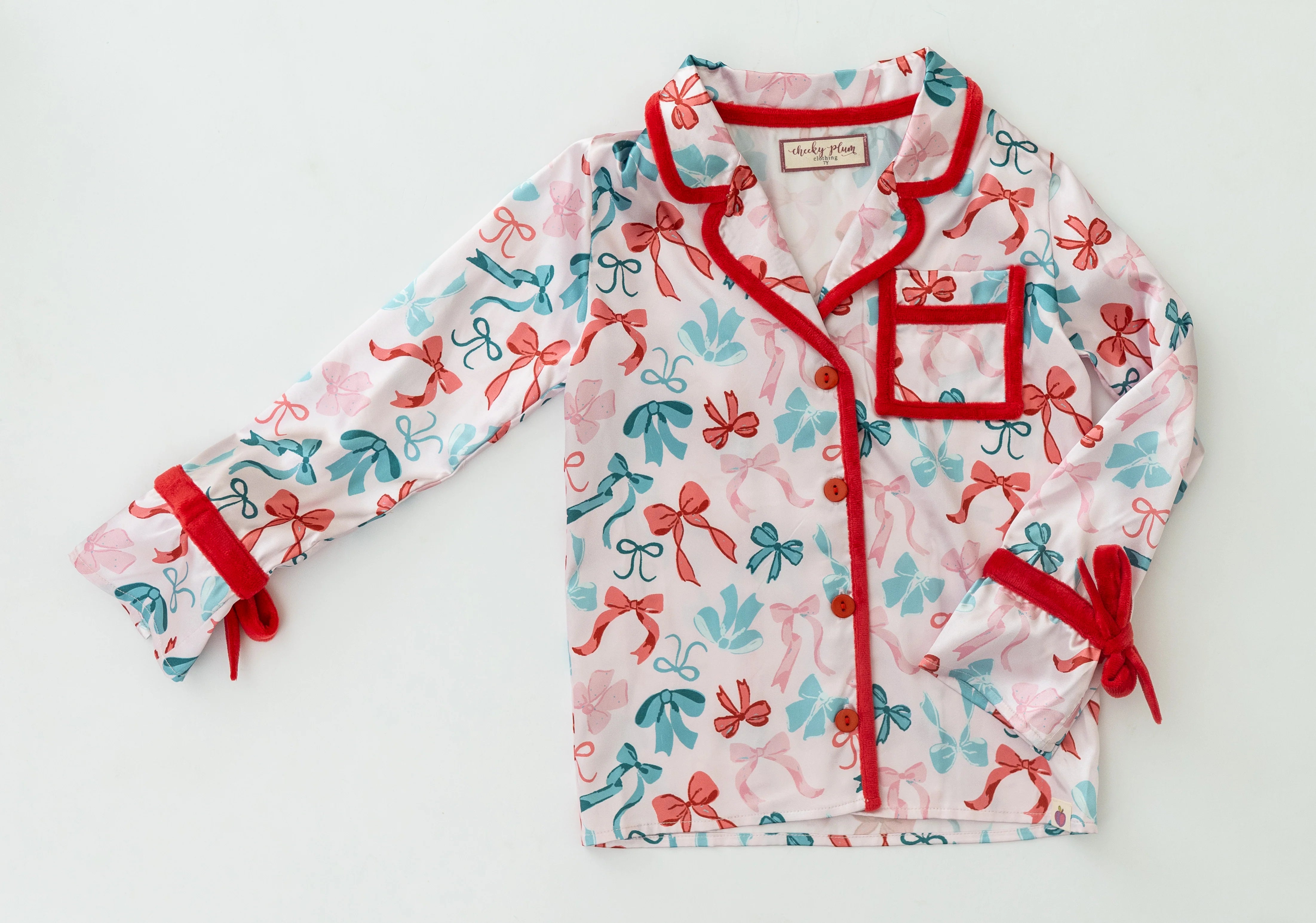 Sweet, stylish, and perfectly festive, our Peppermint Ribbons Satin Loungewear Set is made for cozy holiday nights and picture-perfect mornings. Crafted in silky-soft satin with the prettiest ribbon print, this two-piece set is both comfortable and chic.
