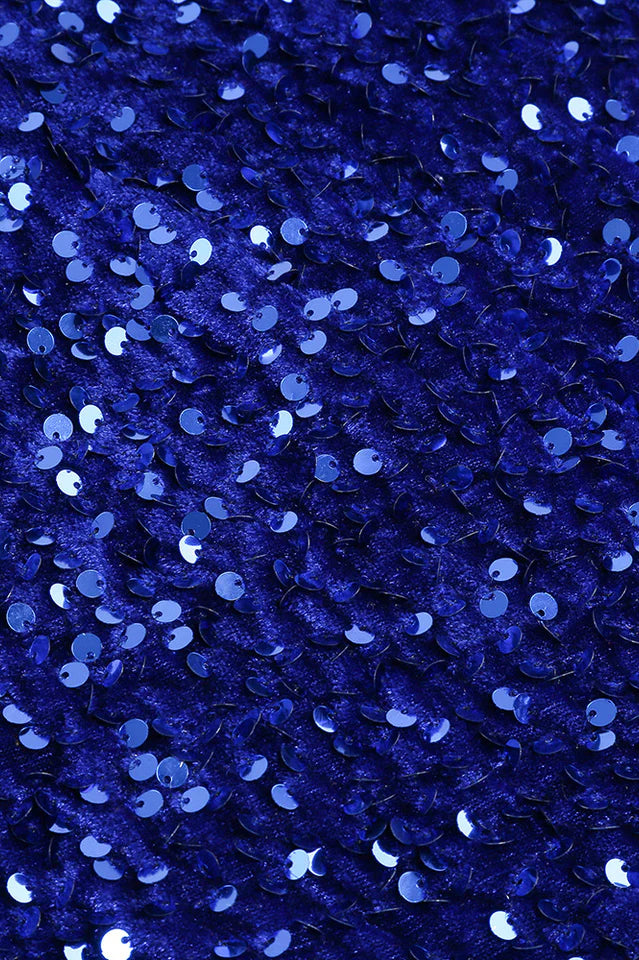 This one shoulder dress is one of our most beloved styles. and for good reason - this version is cut from sequins fabric that sculpts your figure. and the back that's full with galactic cobalt sequin and has wide straps that cross over at the back. Style yours with barely-there heels.