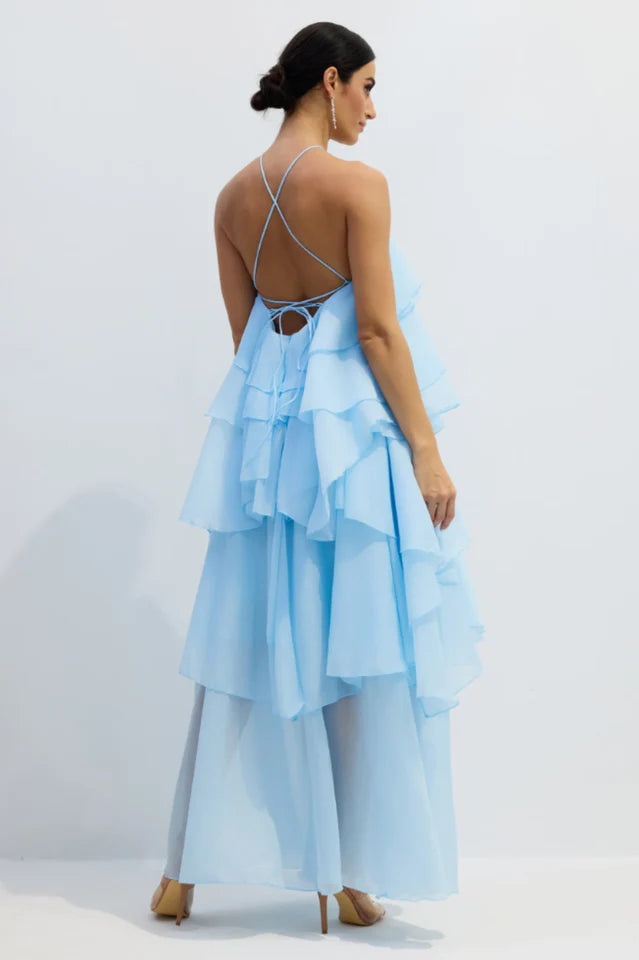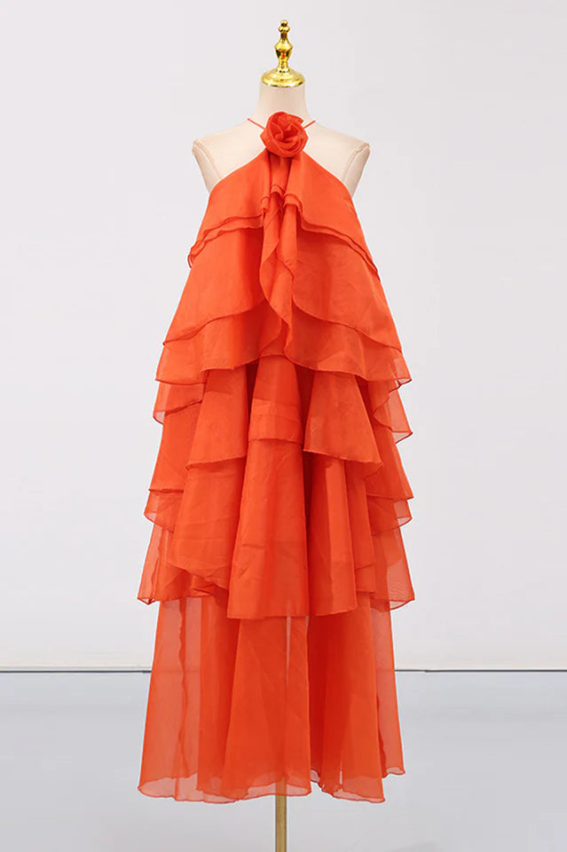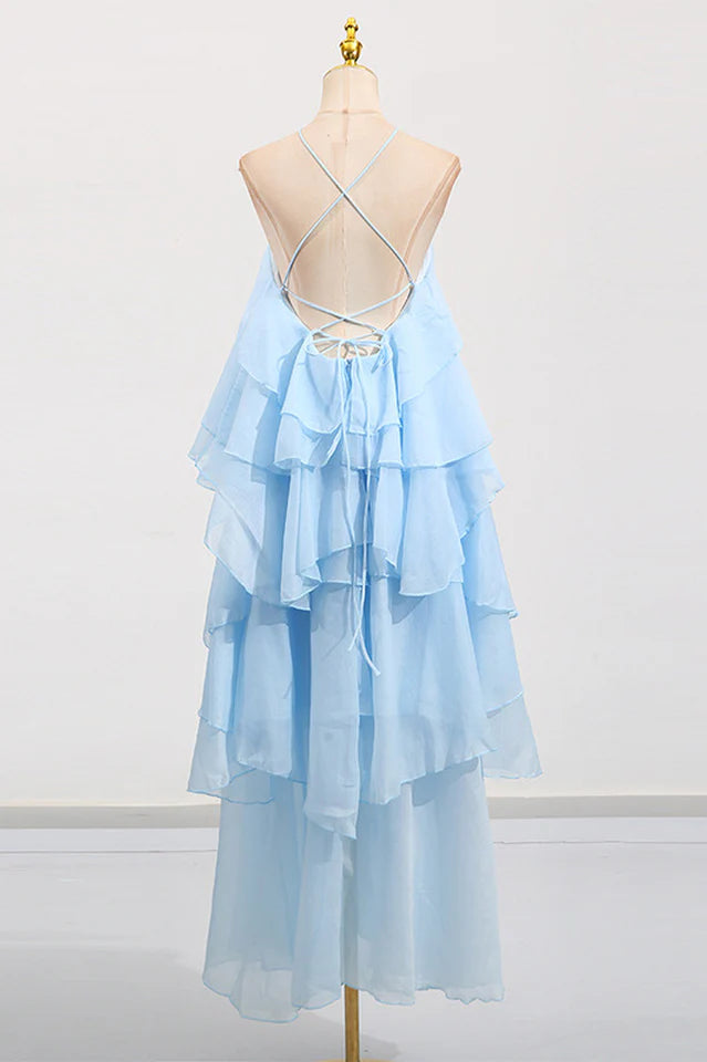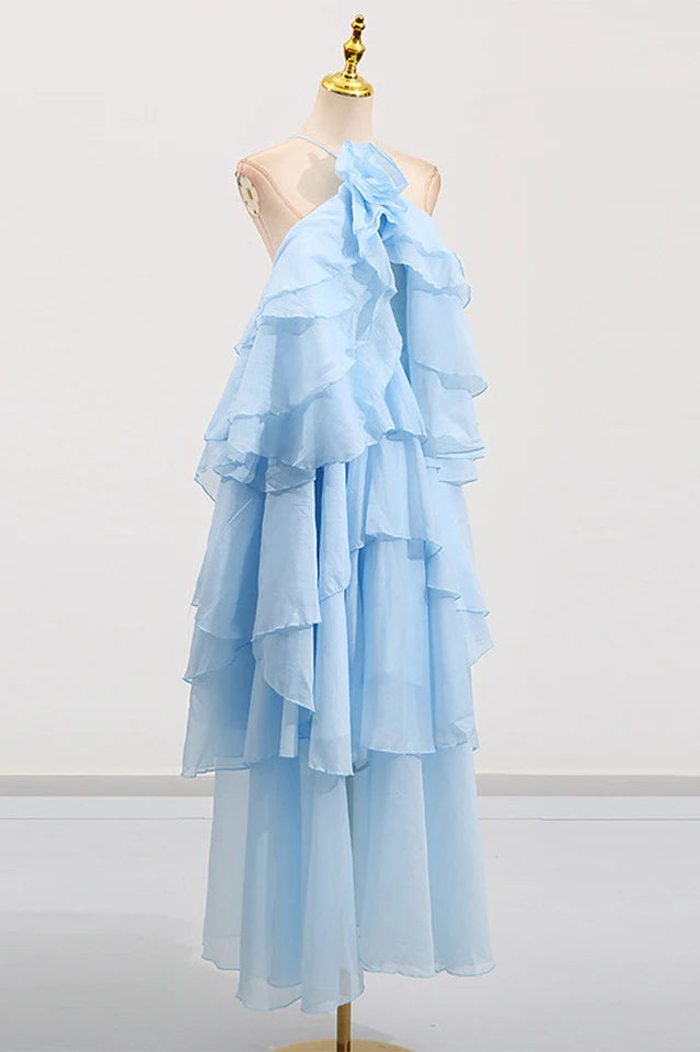 Turn heads in this elegant chiffon maxi dress, designed to flatter every figure from petite to plus size. Ideal as a wedding guest maxi dress, it features a halterneck and tiered ruffles for timeless charm. Perfect for destination weddings, minimalist bridesmaids, or chic seasonal events — effortless style meets comfort for any celebration.