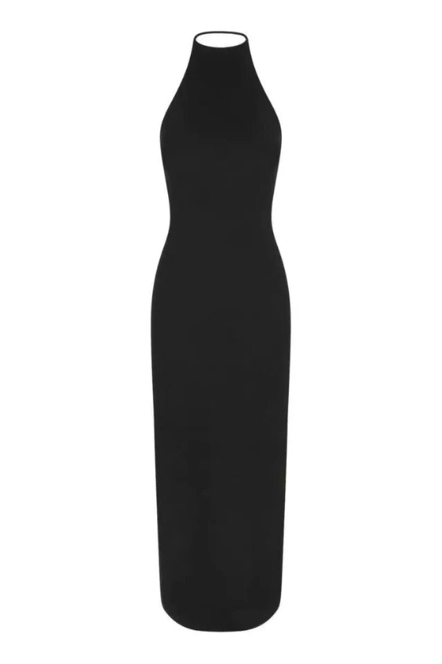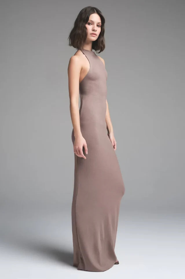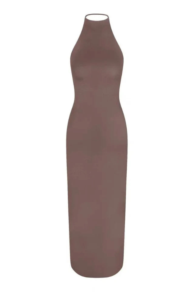Plush elegance, endless allure. Flaunt your figure day to night in this body-hugging halter dress made with our new super soft cloud fabric. With a sexy, open low back and spaghetti strap detail, this full-length style delivers a modern, eye-catching look like no other. Fits true to size.