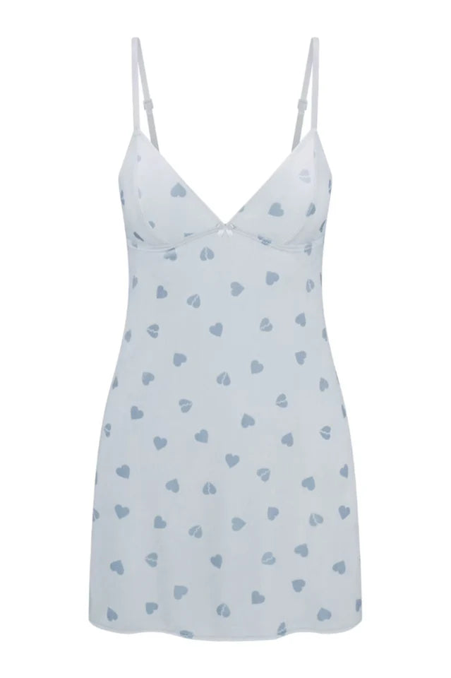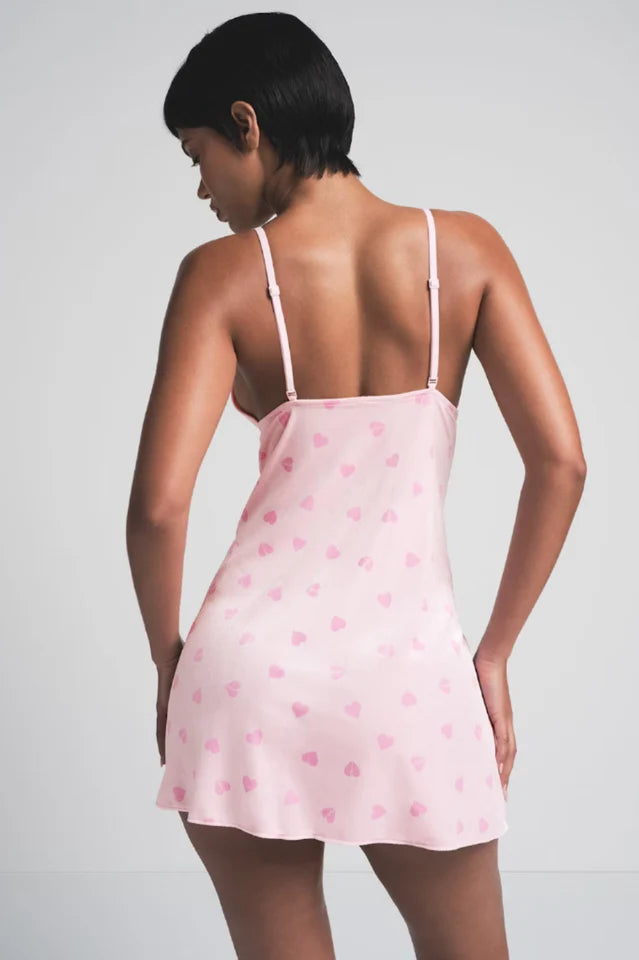 Slip into something romantic. This sweet and sexy mini style is designed with SKIMS ultra-smooth velvet fabric for unbeatable comfort. Features a playful heartbreaker print and dainty front bow detail. Complete with an A-line silhouette, triangle neckline, and adjustable straps. Fits true to size.