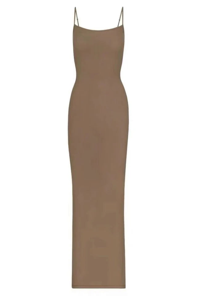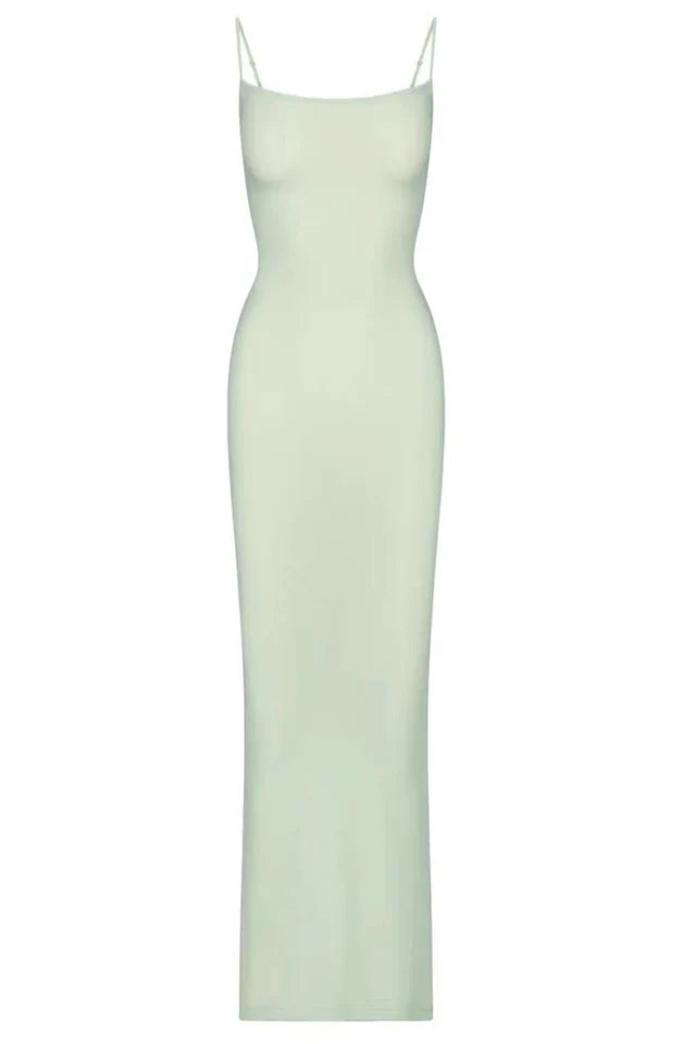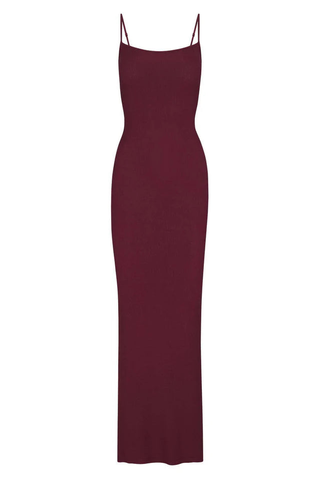 Elevate your loungewear with this super soft, drapey slip dress that offers a comfortable, body-hugging fit. This maxi length dress features a flattering straight neckline and partially adjustable spaghetti straps.