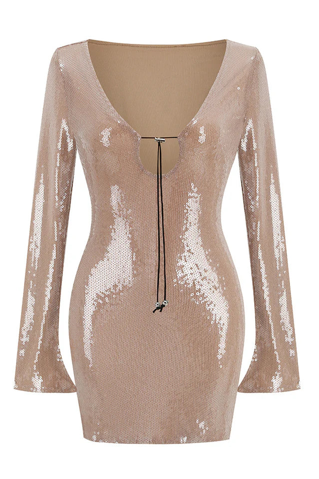 'Solaria' dress easily earns its place as the life of the party. It's made from sequined tulle with a toggled keyhole cutour at the front. The fluted sleeves sway elegantly as you dance. Wear it with your tallest pumps.- For Women.