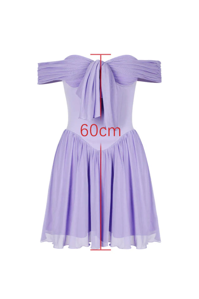 Soleil Orchid Off Shoulder Mini Dress is so fresh, floaty and feminine. Cut from a sustainable stretch crepe, the bodice has a sweeping off the shoulder neckline with underwired cups and a dramatic oversized bow to beautifully showcase the corseted bodice. The floaty skirt is gorgeously gathered for pretty movement and it zips to the back for easy on.