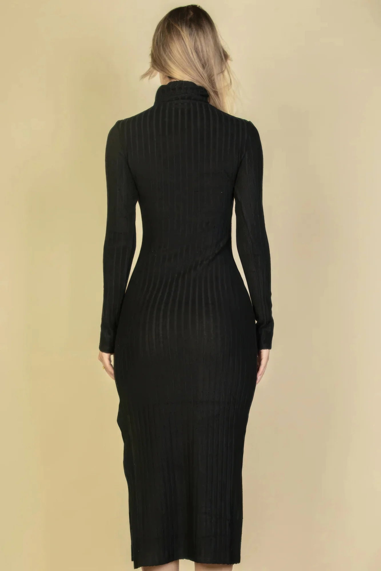 Design: Featuring a classic turtleneck, long sleeves, and a dramatic split thigh detail, this dress is perfect for showing off your personal style with a touch of elegance.