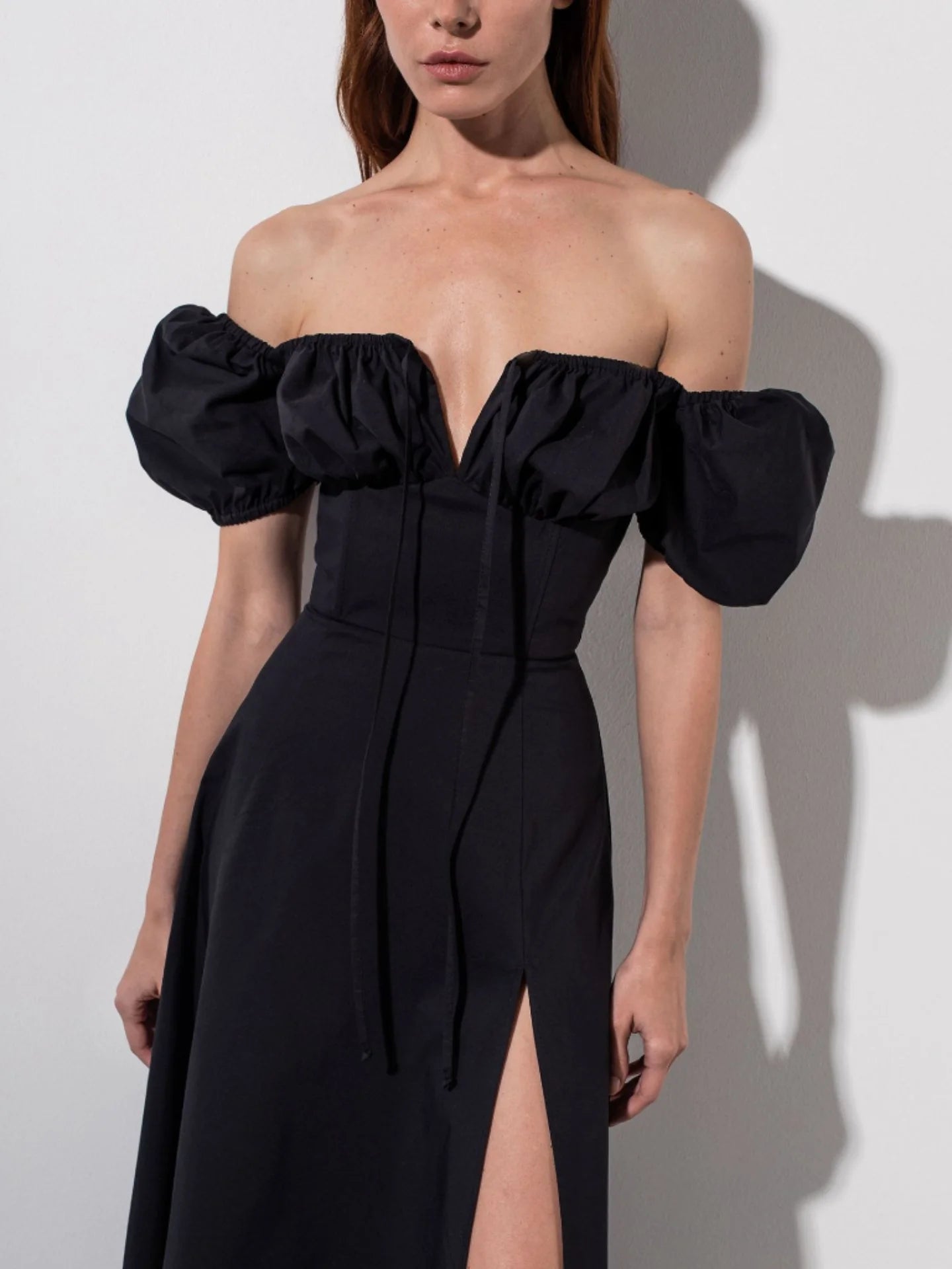'Tallulah''s crisp looks have us dreaming of garden parties and summer excursions. It's cut from stretch-cotton poplin in a crisp white hue. Top has body-hugging herringbone front and sides to create the perfect corseted hourglass shape. Lightly contoured breast cup lining for a comfortable fit. Pretty puff sleeves add to the fun and flowy 'Tallulah' feel, and we love how the side slits peep out of your long legs as you walk. "Tallulah" is very suitable for girls to perfectly show their feminine side and more sexy side.