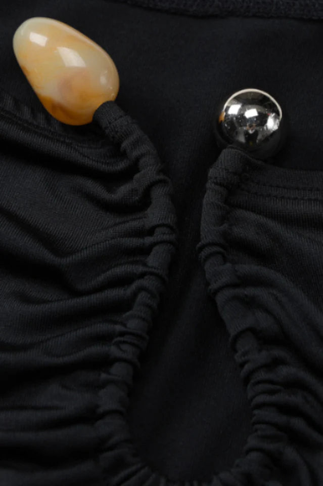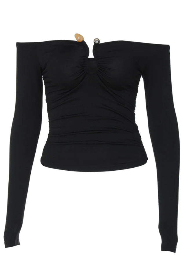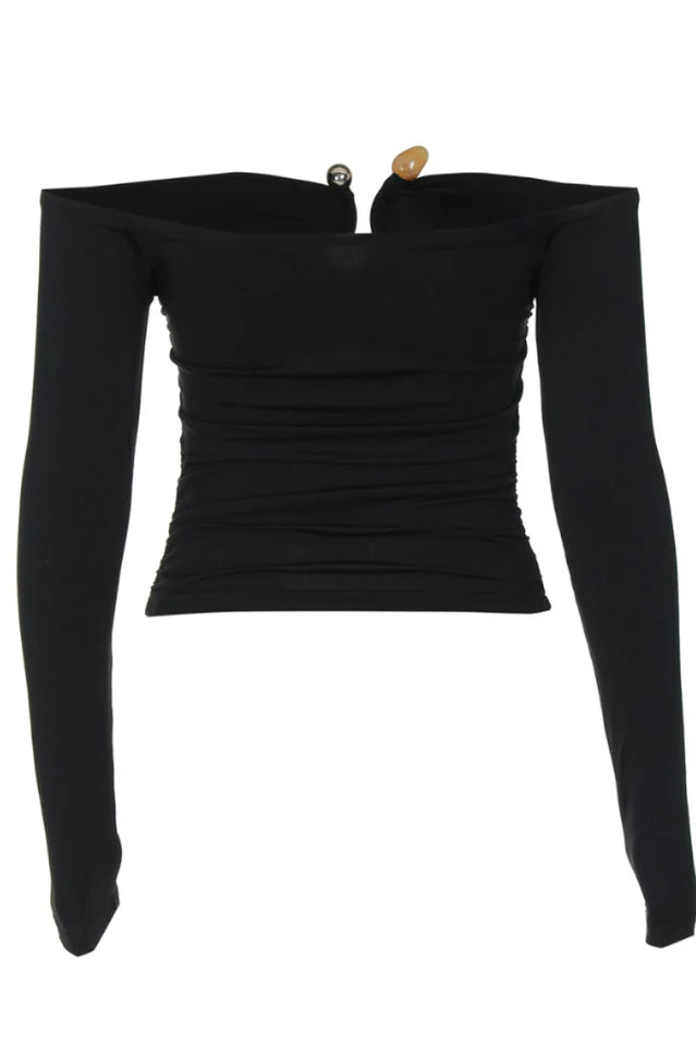 Introducing the Tayla Trim Long Sleeve Top. Designed with rouching along the bodice, a off the shoulder neckline, and bold beaded trim detailing, this top is the epitome of luxury. The structured centre detail provides a flattering fit.