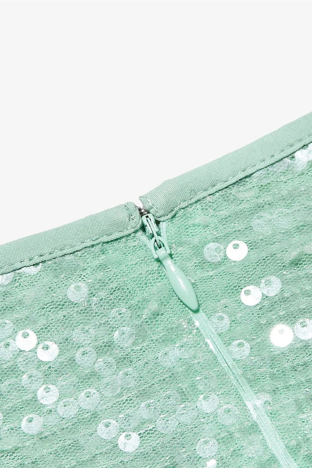 Glittering sequins adorn our show stopping 'Titania' gown for an ethereal presence in a beautifully designed silhouette. The close fit accentuates your curves, enhanced by our special stretch power mesh lining for a figure sculpting fit. It has long sleeves and a flirtatious cutout to the front with delicate satin ties.