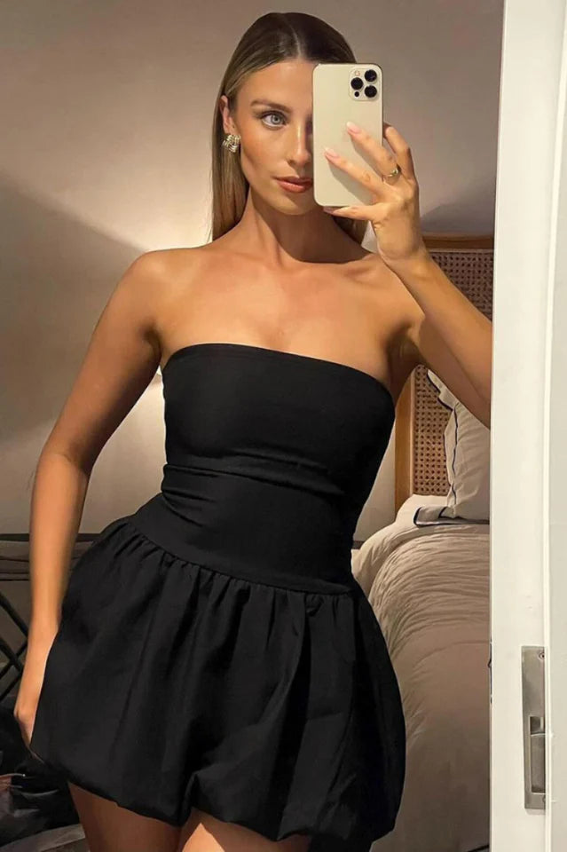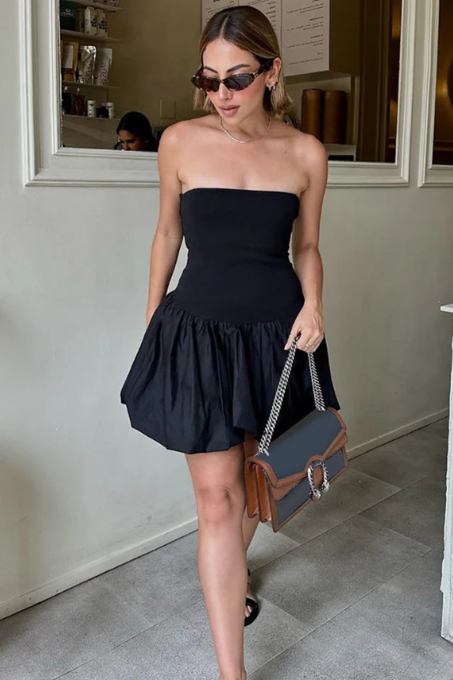 - Tube Bubble Hem Mini Dress